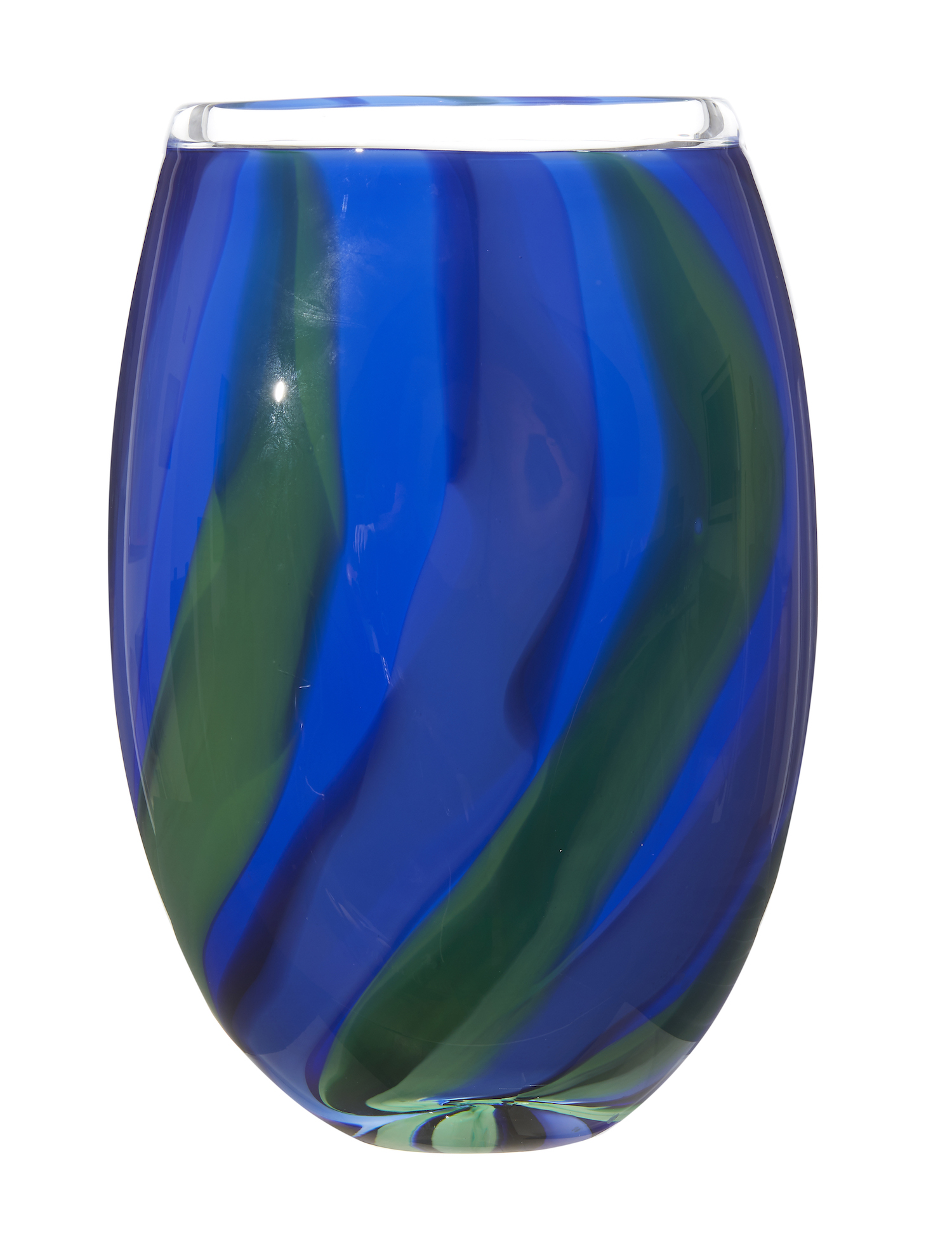In colours of blue and green. Signed and dated 'O & M Hoglund America's Cup 2003' in script on base.