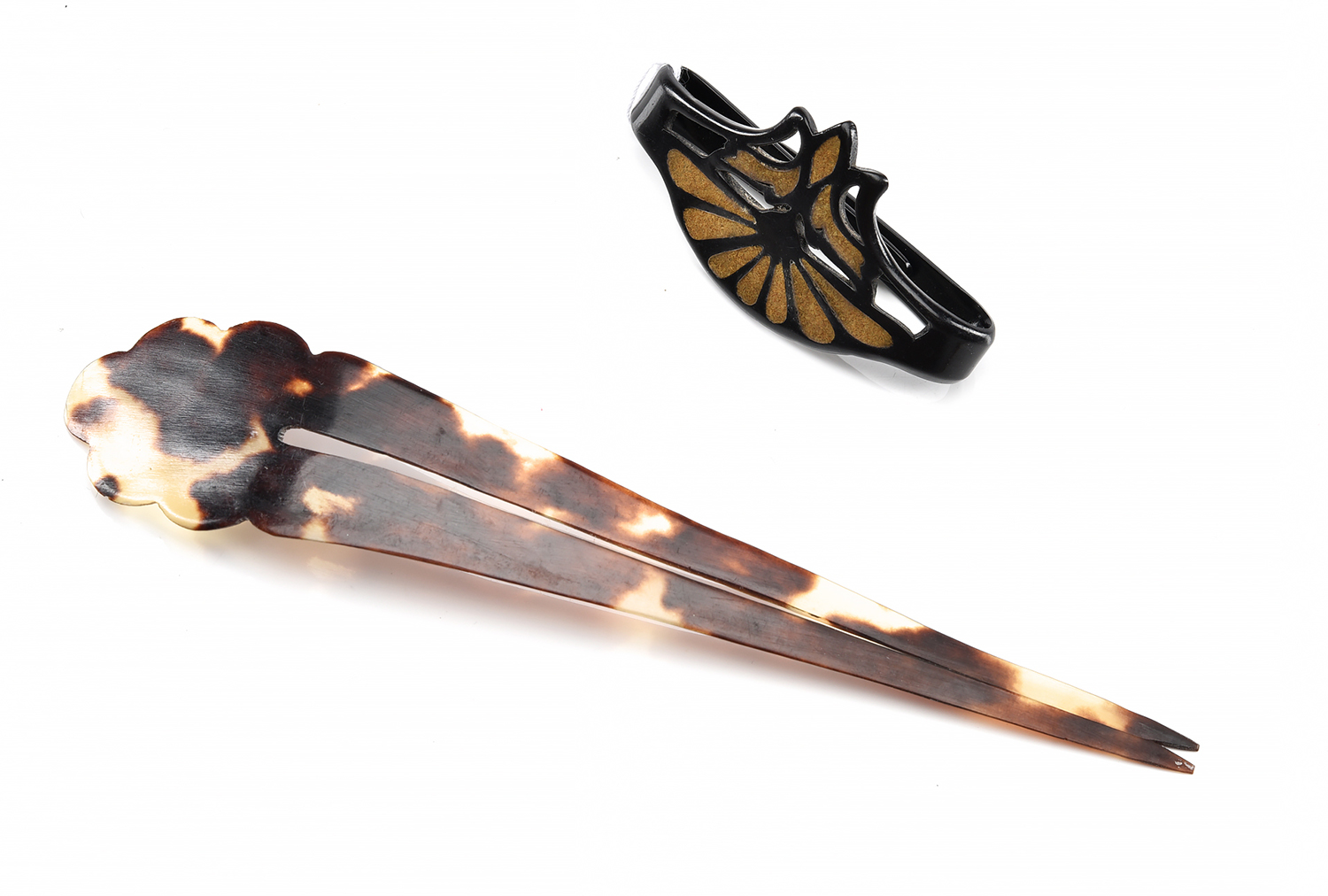 AN ART DECO SCARF CLIP TOGETHER WITH A TORTOISESHELL COMB
