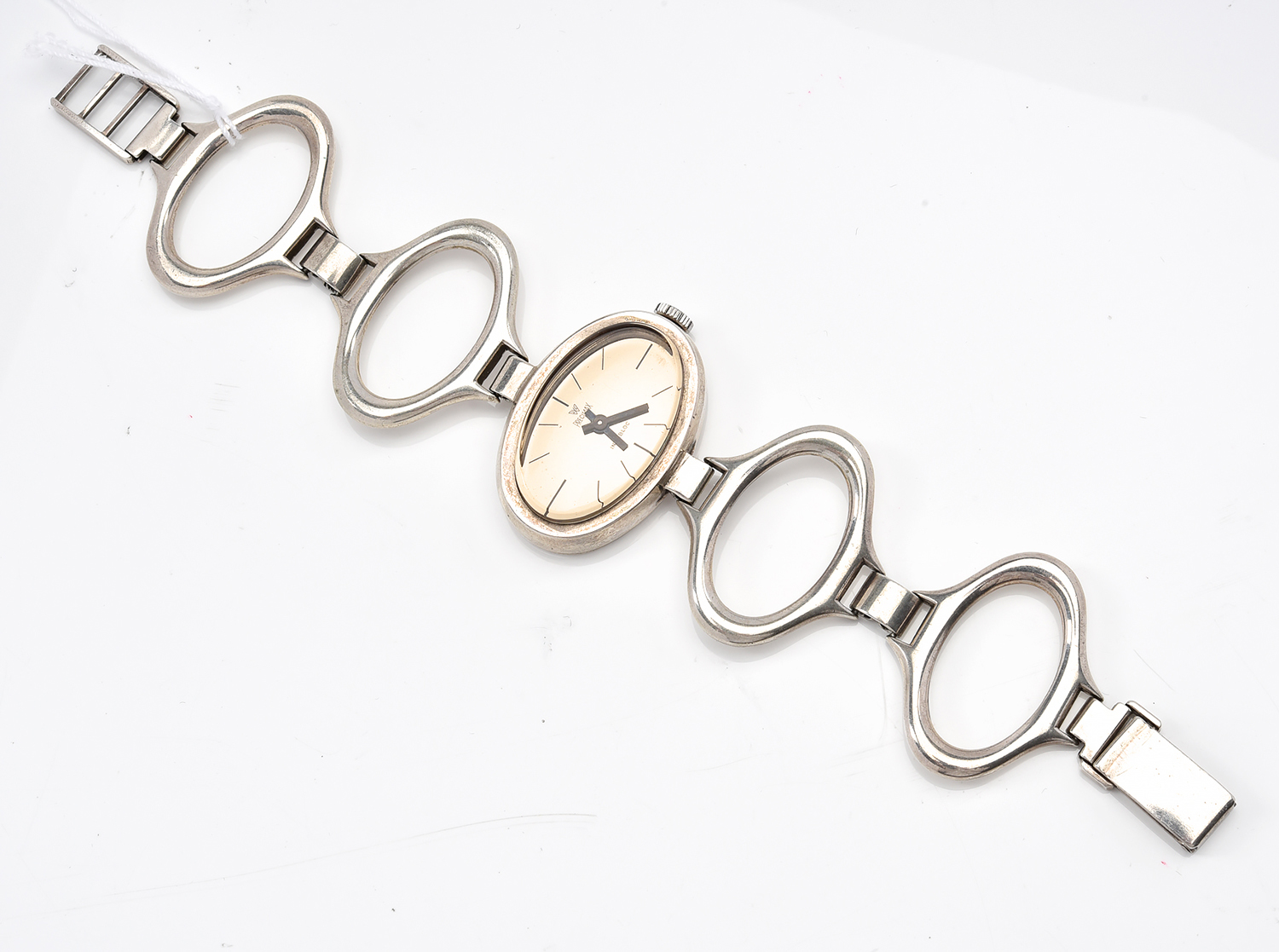 A RETRO STYLE WRISTWATCH TO A STERLING SILVER CASE