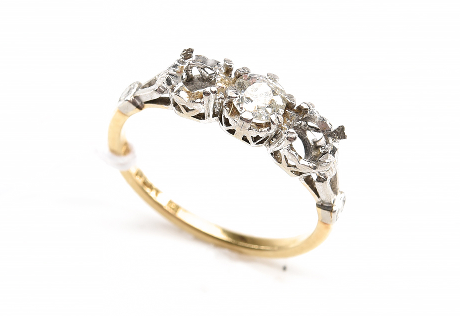AN OLD EUROPEAN CUT DIAMOND RING IN 18CT GOLD AND PLATINUM, SIZE M, (A/F)