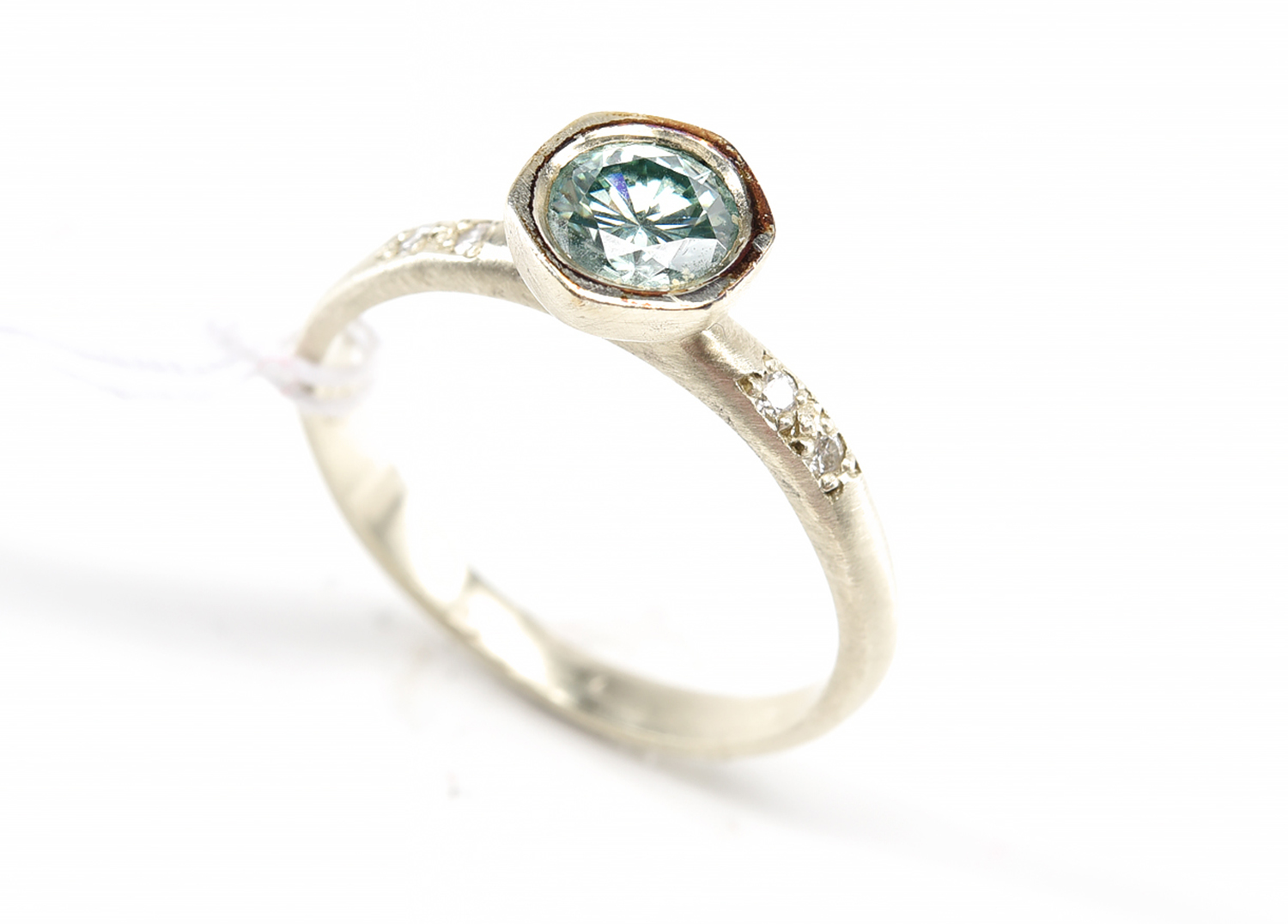 A SYNTHETIC BLUE ZIRCON RING IN 9CT WHITE GOLD, SIZE N