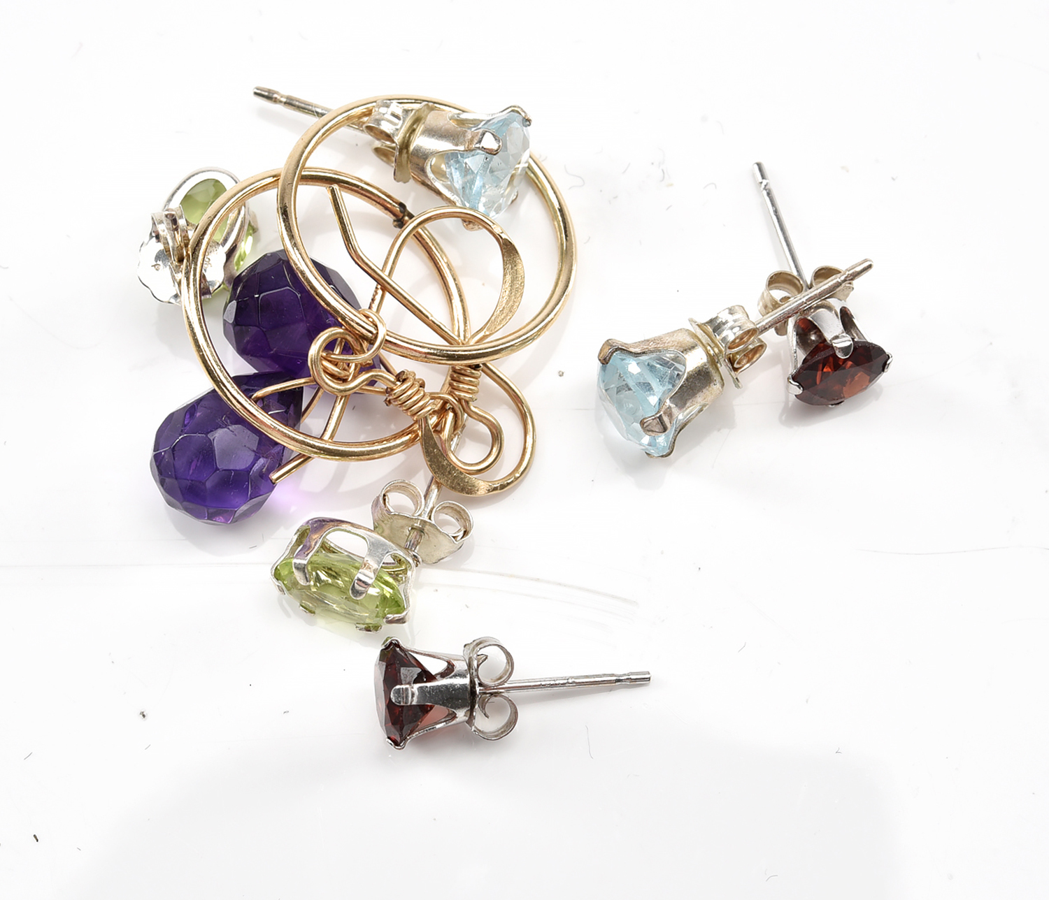 A COLLECTION OF FOUR GEMSTONE EARRINGS