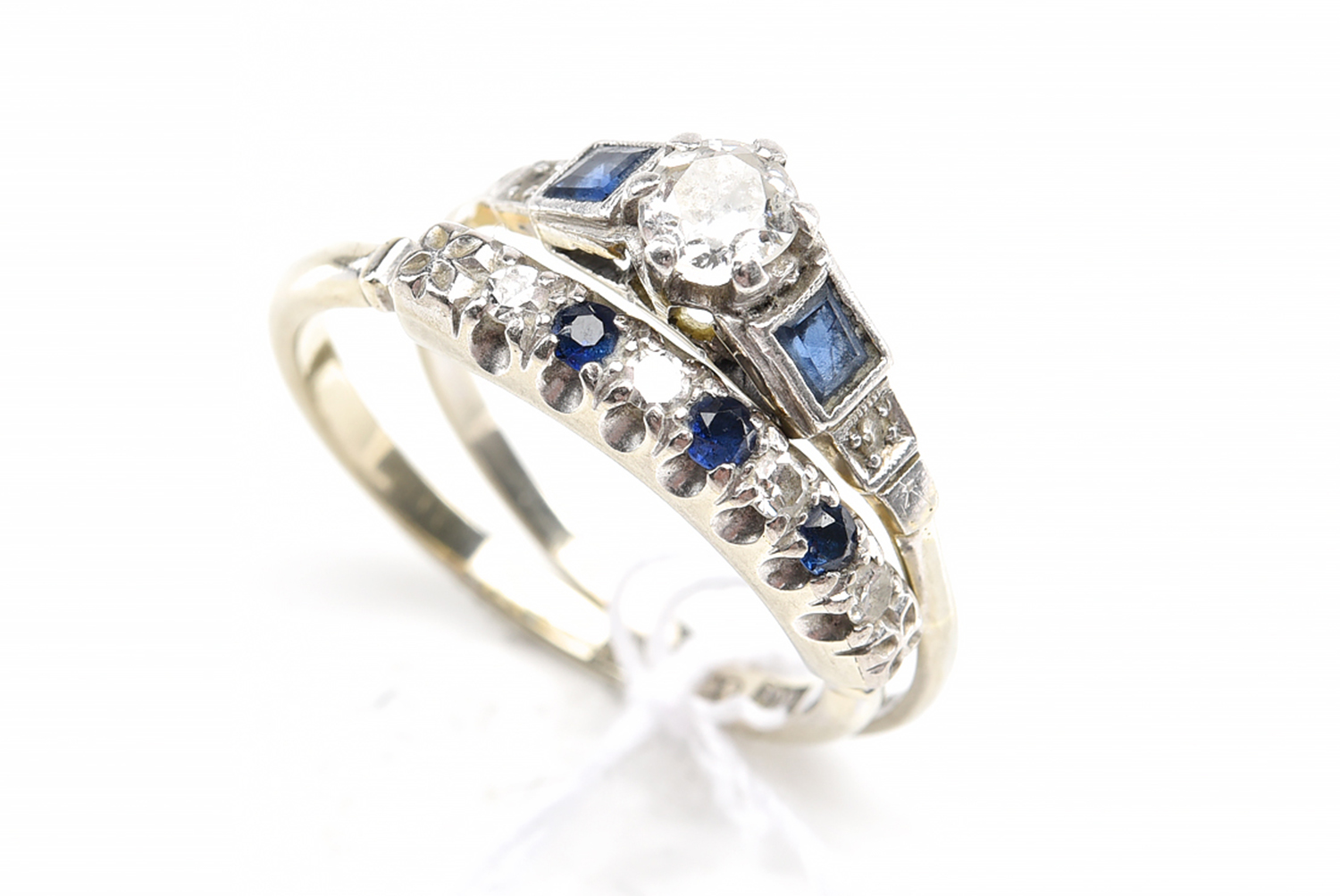AN OLD EUROPEAN CUT DIAMOND AND SAPPHIRE RING, TOGETHER WITH A DIAMOND AND SAPPHIRE RING, SIZE Q