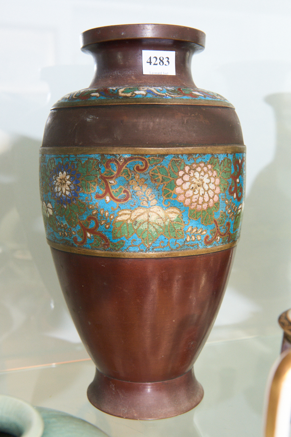 A JAPANESE CHAMPLEVÉ ENAMELLED BRONZE VASE