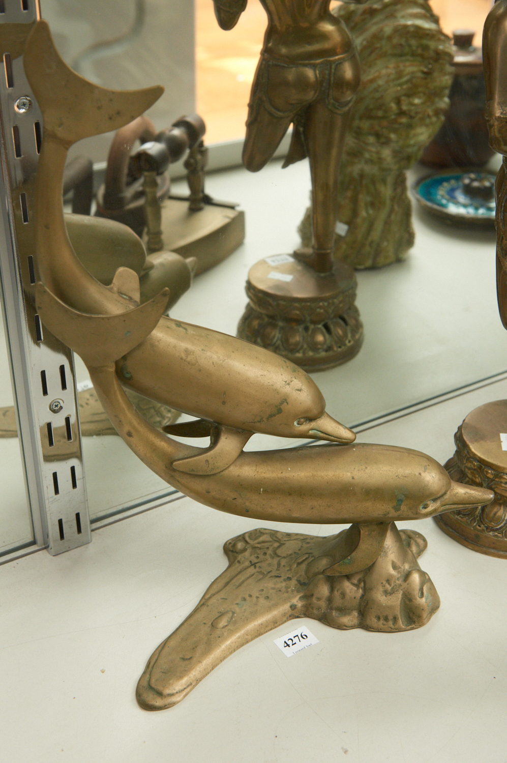 A TWIN DOLPHIN BRASS FIGURAL GROUP, 20TH CENTURY