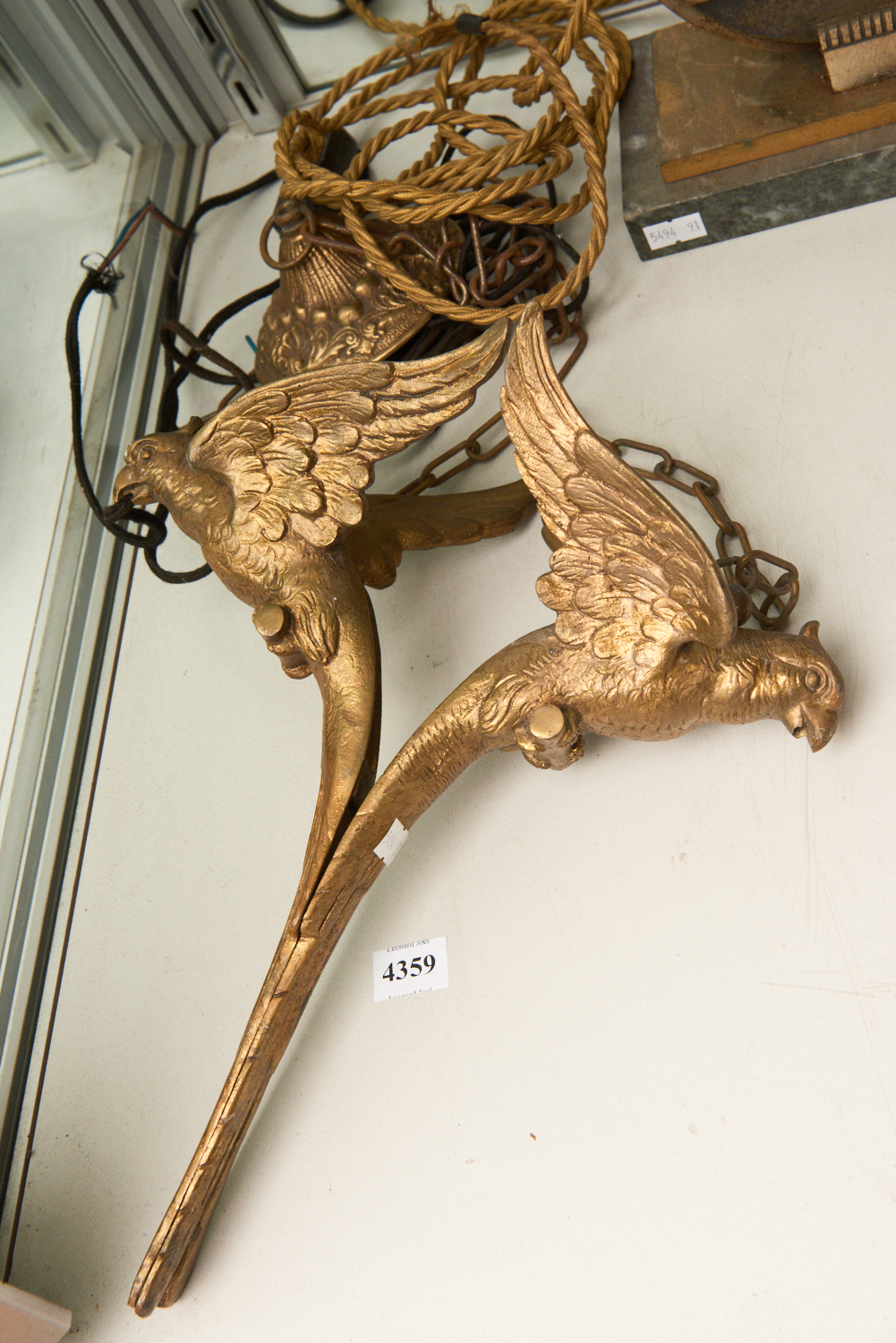 A DOUBLE PARAKEET CEILING LIGHT, EARLY 20TH CENTURY