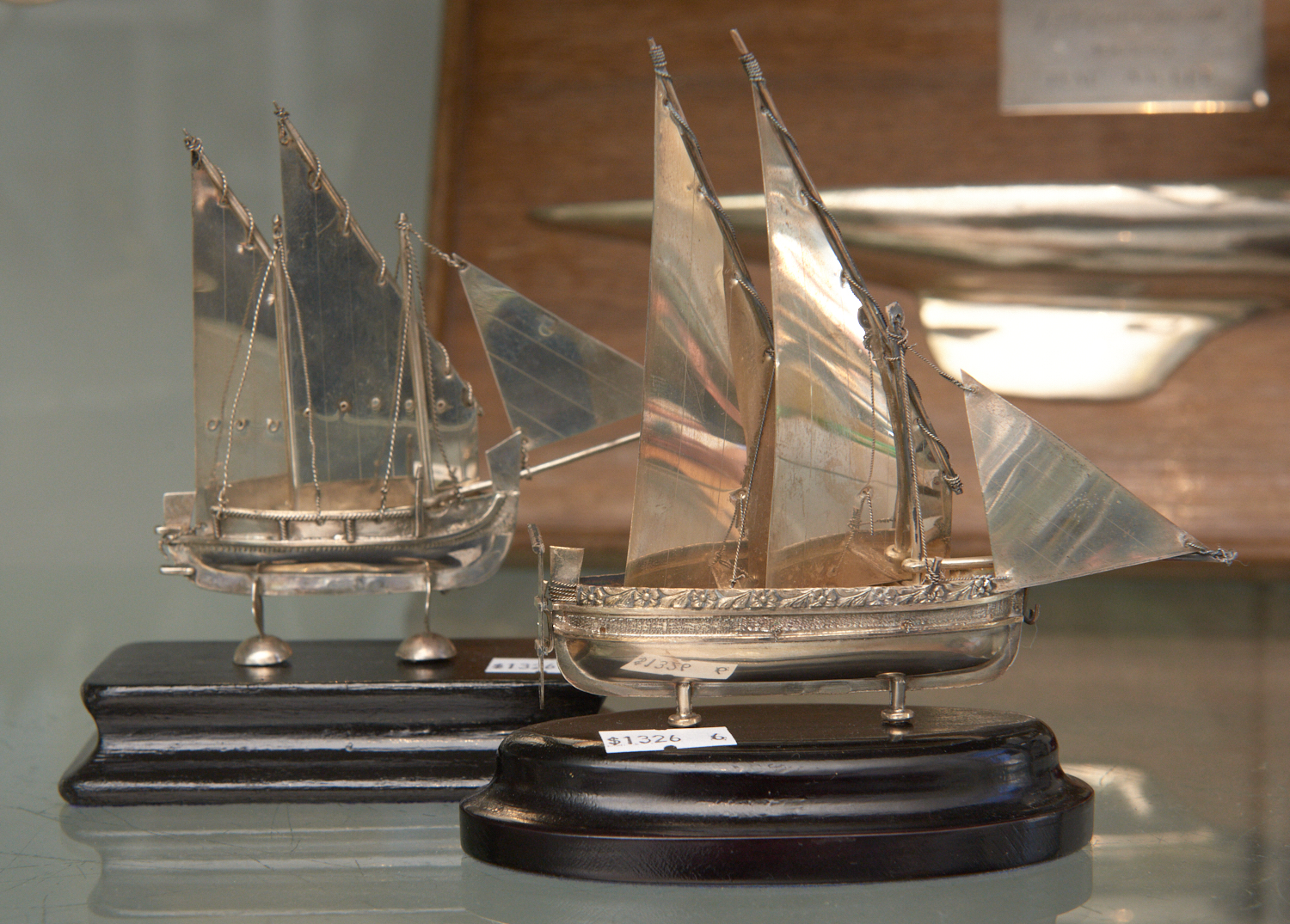 TWO SOLID SILVER SHIP MODELS