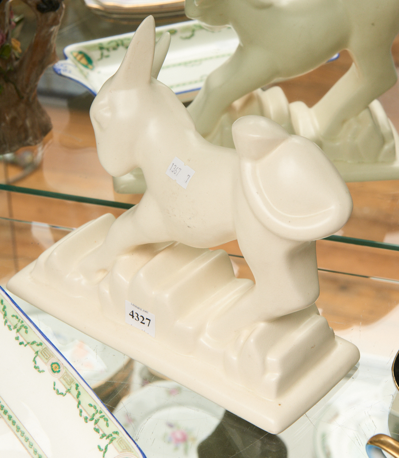 A BESWICK ART DECO CREAM PORCELAIN DEER STATUE, CIRCA 1930, IMPRESSED FACTORY MARK, 22CM HIGH