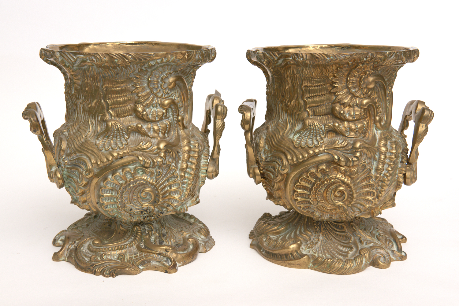 A PAIR OF FRENCH ROCOCO REVIVAL MANTEL URNS, CAST BRONZE, 19TH CENTURY, 27CM HIGH