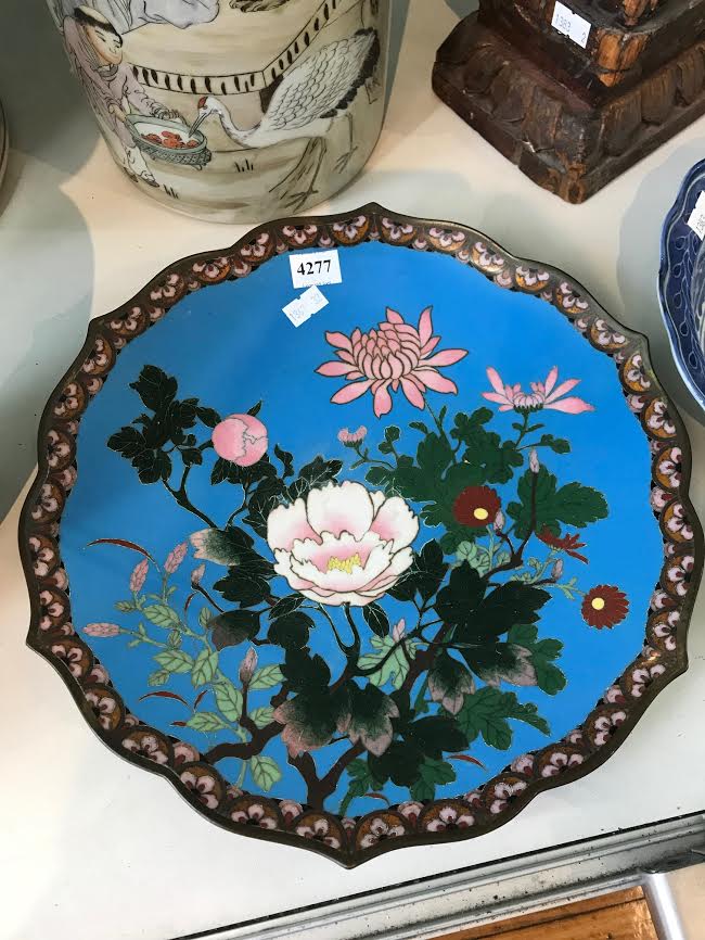 A JAPANESE CLOISONNÉ PLAQUE WITH PEONY MOTIF, MEIJI PERIOD, LATE 19TH CENTURY, 31CM DIAMETER