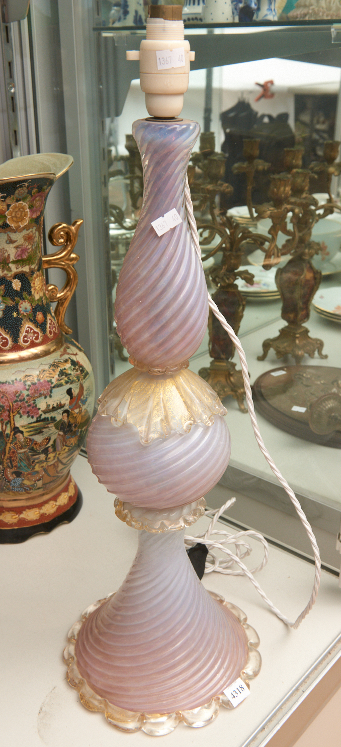 A MURANO GLASS TABLE LAMP BASE, CIRCA 1930, 60CM HIGH