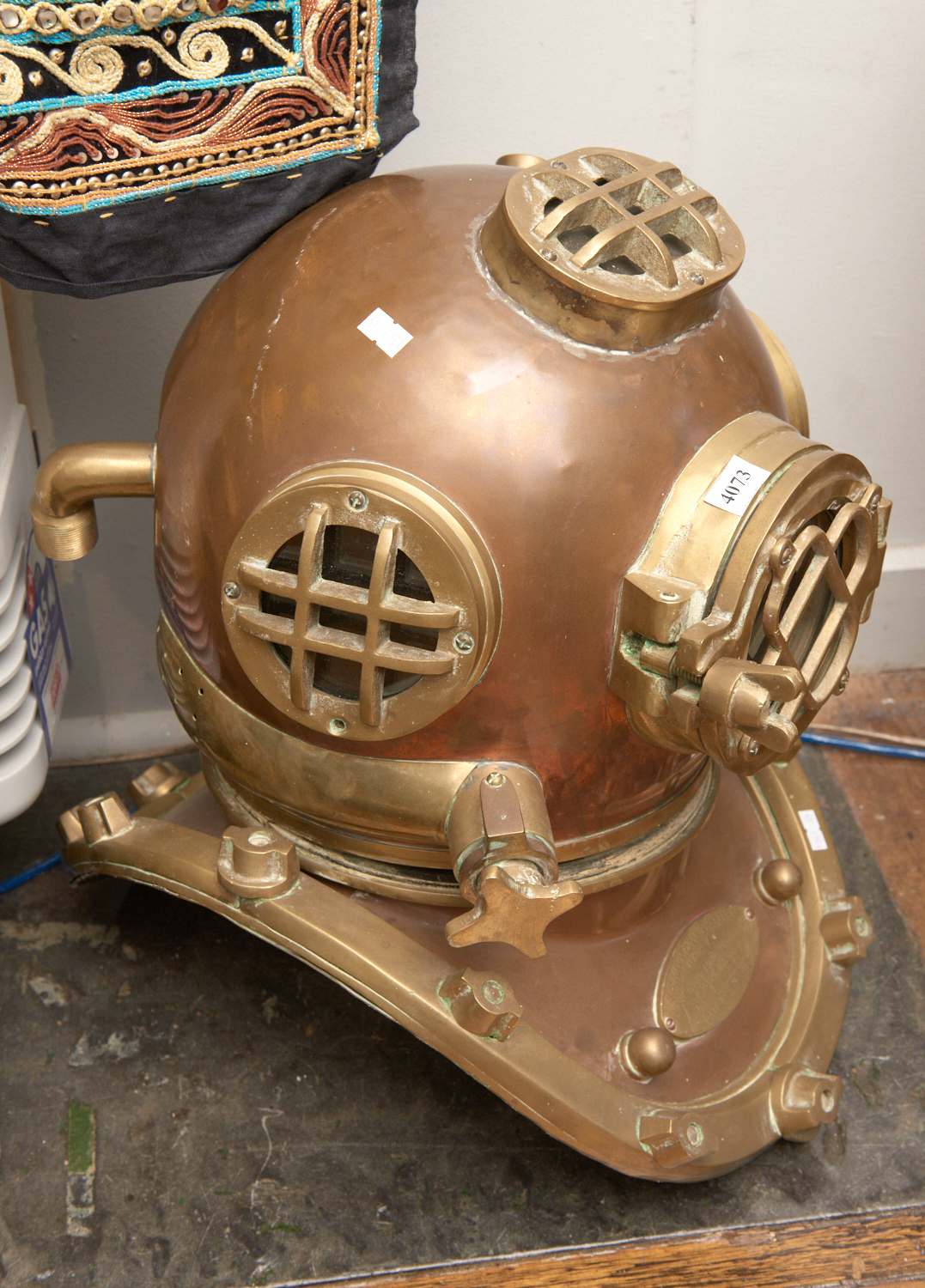 A DIVER'S HELMET, COPPER AND BRASS, EARLY 20TH CENTURY, 40CM HIGH