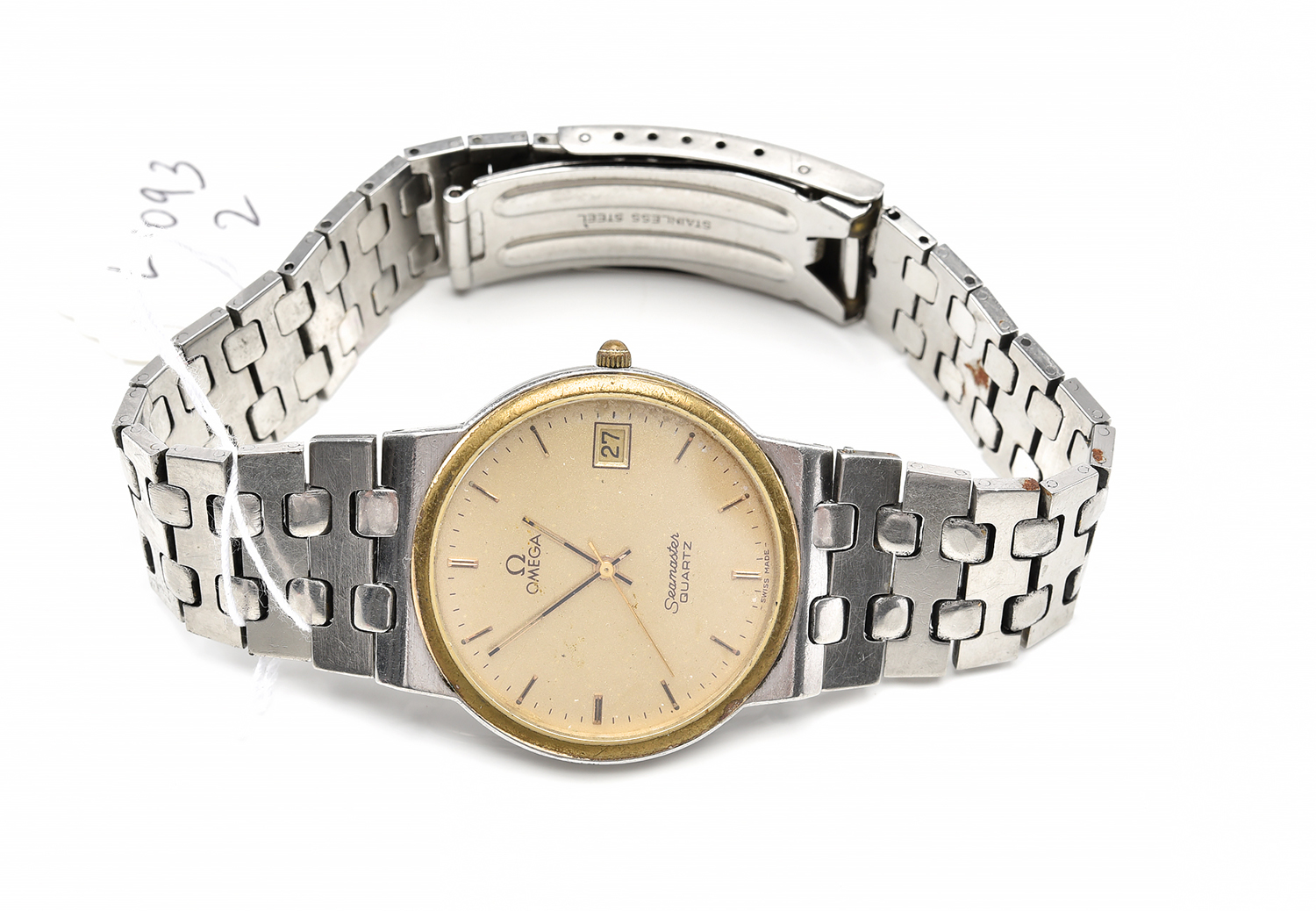 AN OMEGA SEAMASTER QUARTZ WRISTWATCH TO STAINLESS STEEL CASE AND CONFORMING BANDS