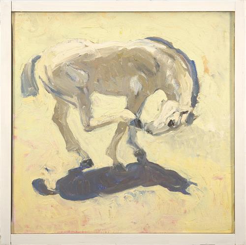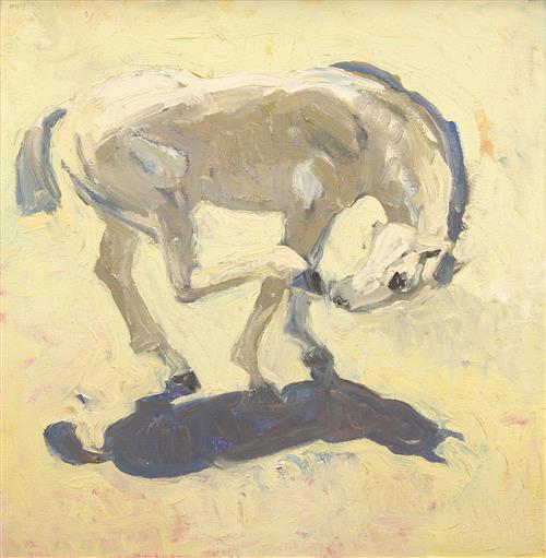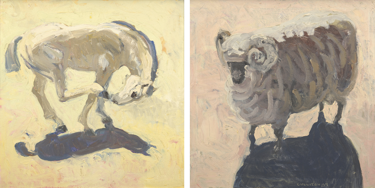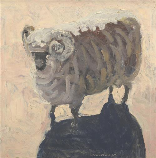 "Lucy is one of those painters whose paintings relate closely to each other, as well as to her own history and way of being now. Between life and canvas there's a constant, evolving exchange. For example, she has pet sheep, and recently she's painted dozens of head-and-shoulders portraits of them, up close. That's life; but from a painterly perspective, the sheep portraits developed out of her paintings of inanimate objects: knitted covered coat hangers and woollen dolls' dresses and babies' layettes. Having risen to the challenge of representing knitted wool, she went back to the source, painting the different fleeces of her flock, some arranged in greasy swathes, some in corkscrews." National Portrait Gallery, London