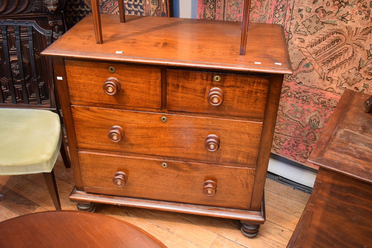 A FOUR DRAWER VICTORIAN CHEST (A/F) (93H x 97W x 52D CM)