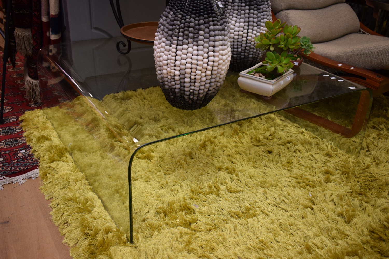A CONTEMPORARY ITALIAN BEVELLED EDGE GLASS COFFEE TABLE (34H x 105W x 105D CM)