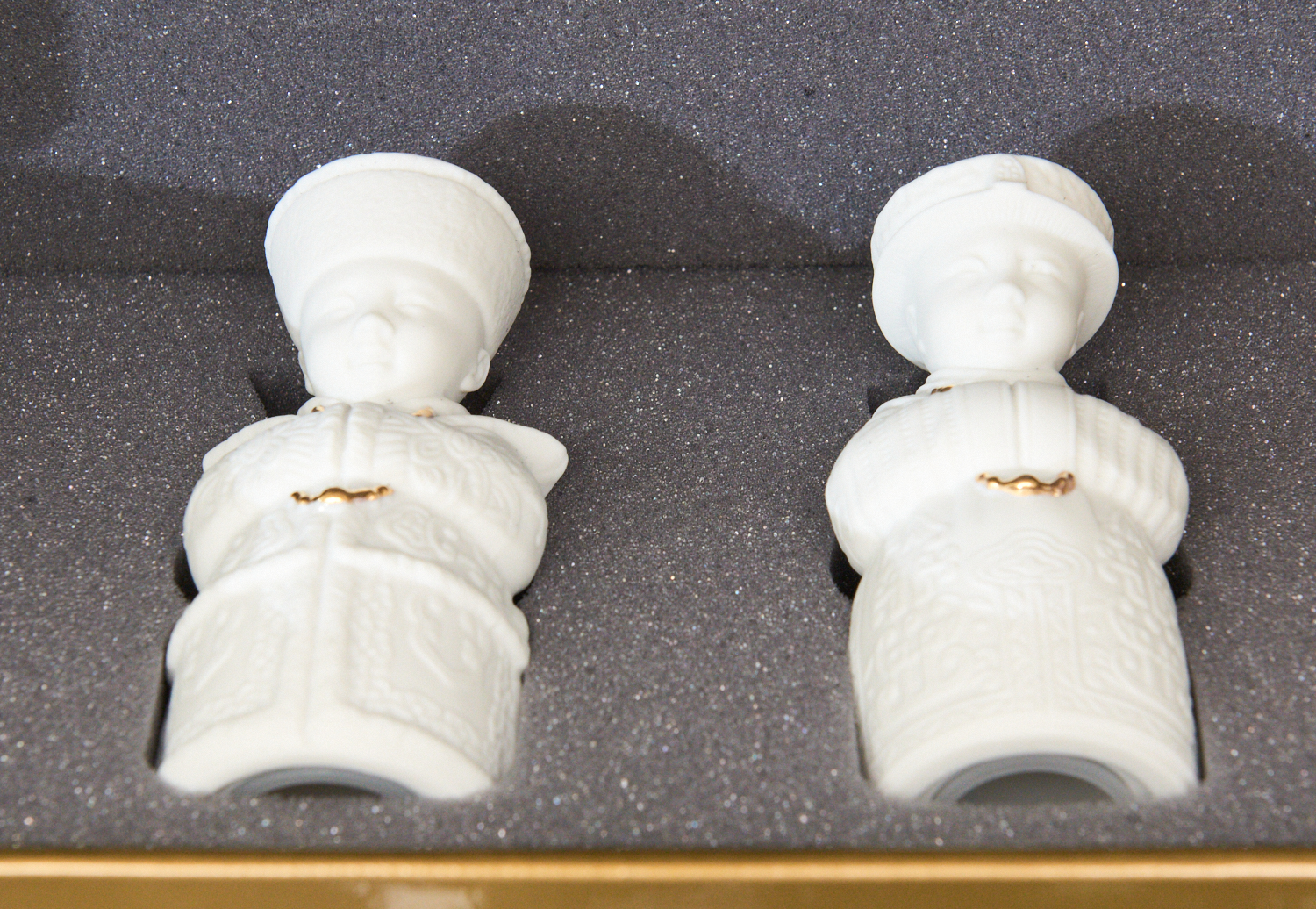 A PAIR OF LLADRO BISQUE FIGURAL SALT AND PEPPER SHAKERS, BOXED