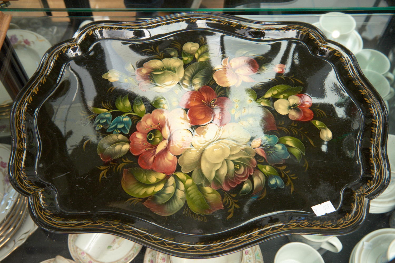 A STERLING SILVER THREE PIECE TEA AND COFFEE SERVICE ON MATCHING STERLING SILVER OVAL TWO HANDLED TRAY