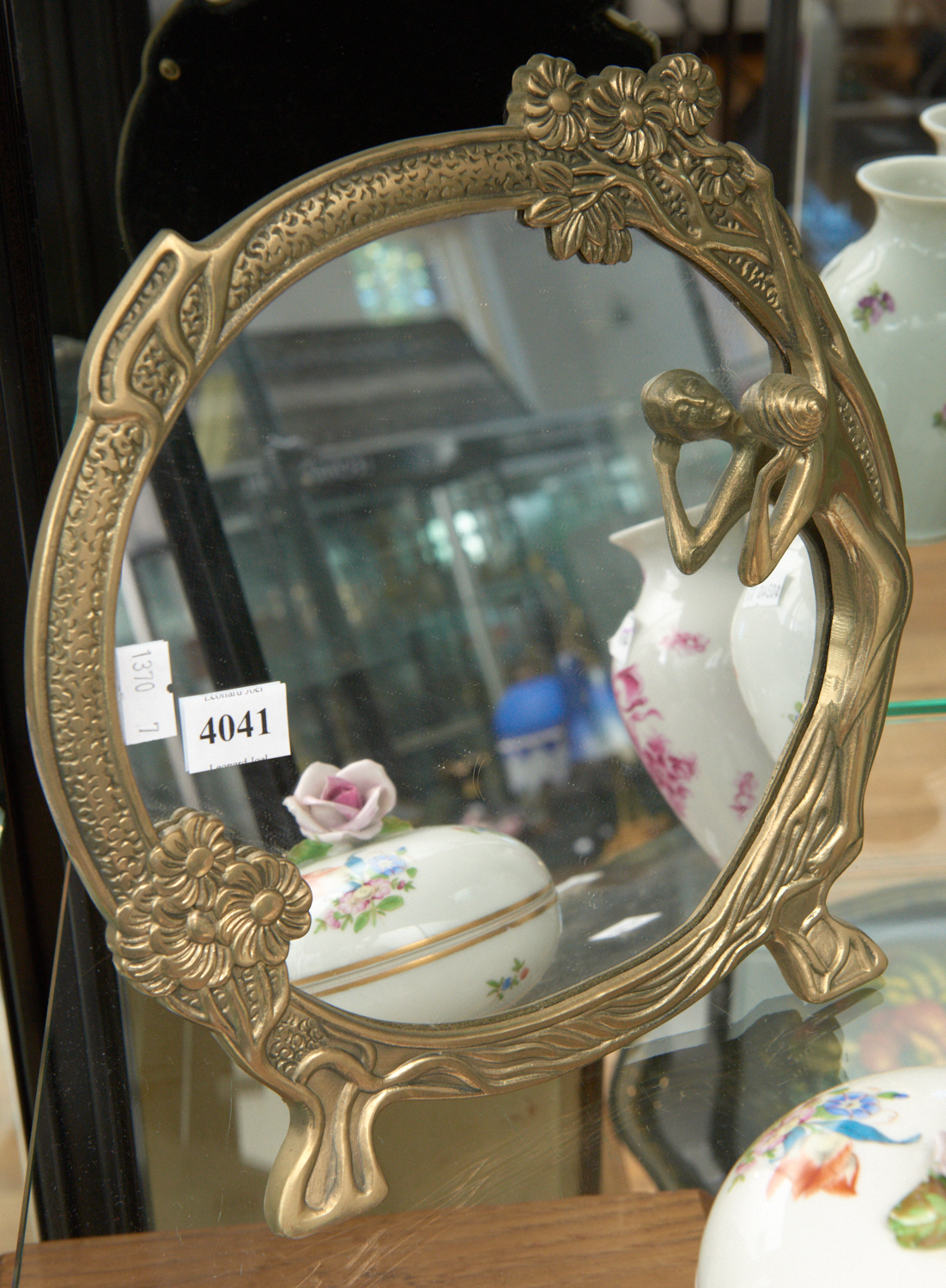 A FRENCH GILT BRONZE AND MARBLE FIGURAL LAMP - MILKGLASS SHADE