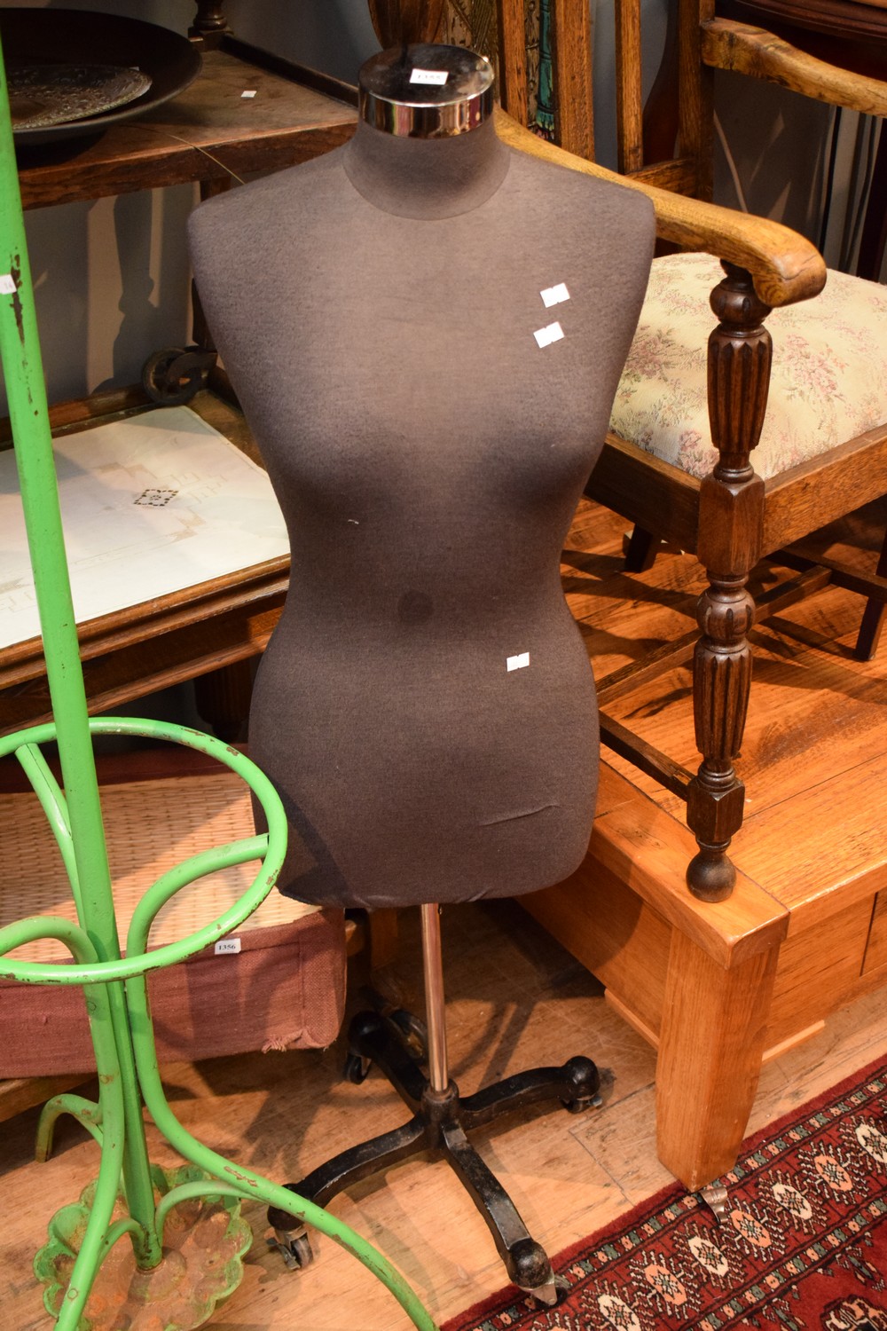 A STEEL BASE DRESSMAKER MANNEQUIN