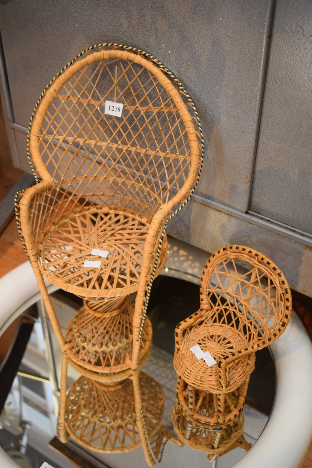 TWO APPRENTICE PIECE WICKER PEACOCK CHAIRS