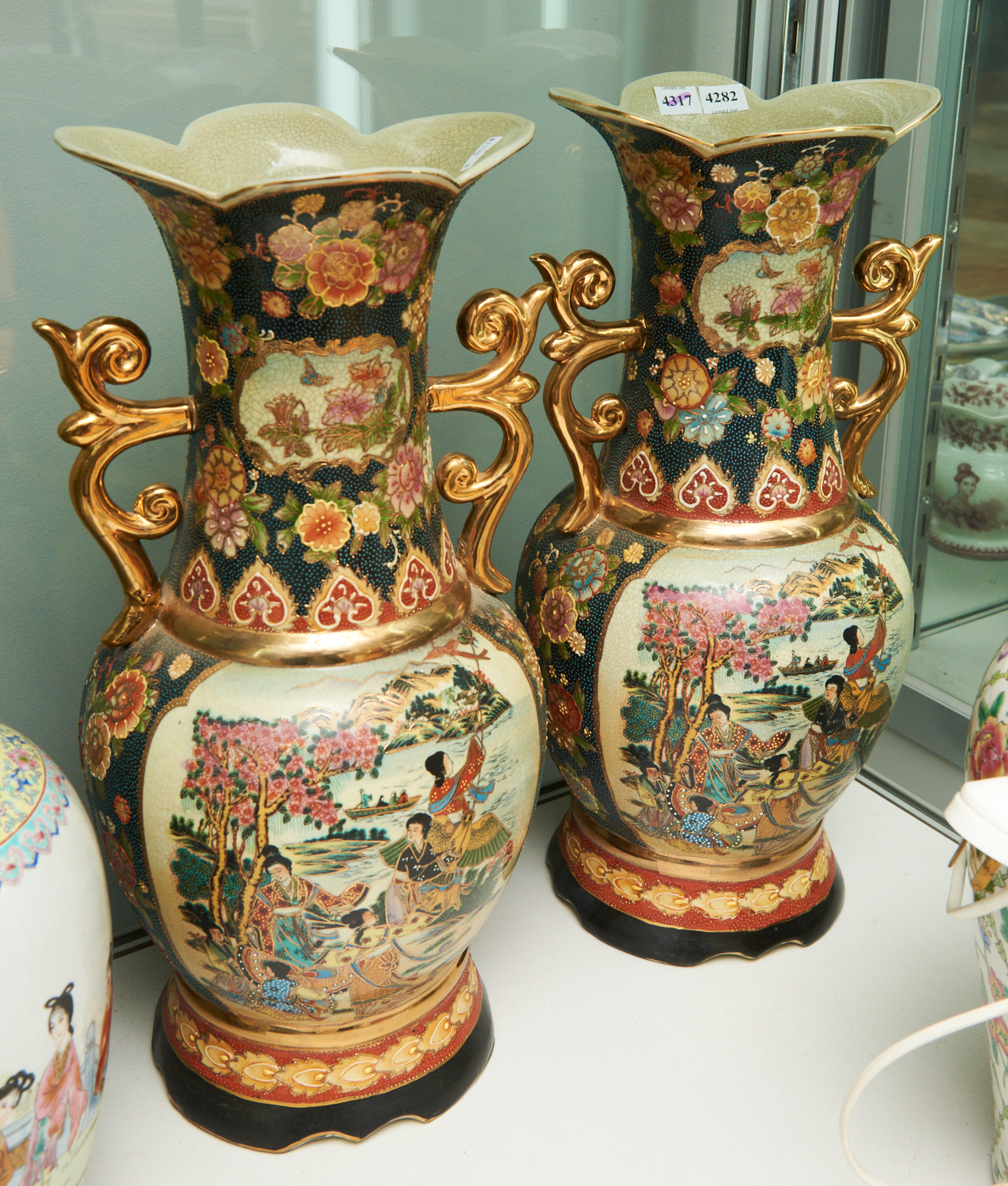 A LARGE PAIR OF JAPANESE SATSUMA VASES, 20TH CENTURY, 46 CM HIGH