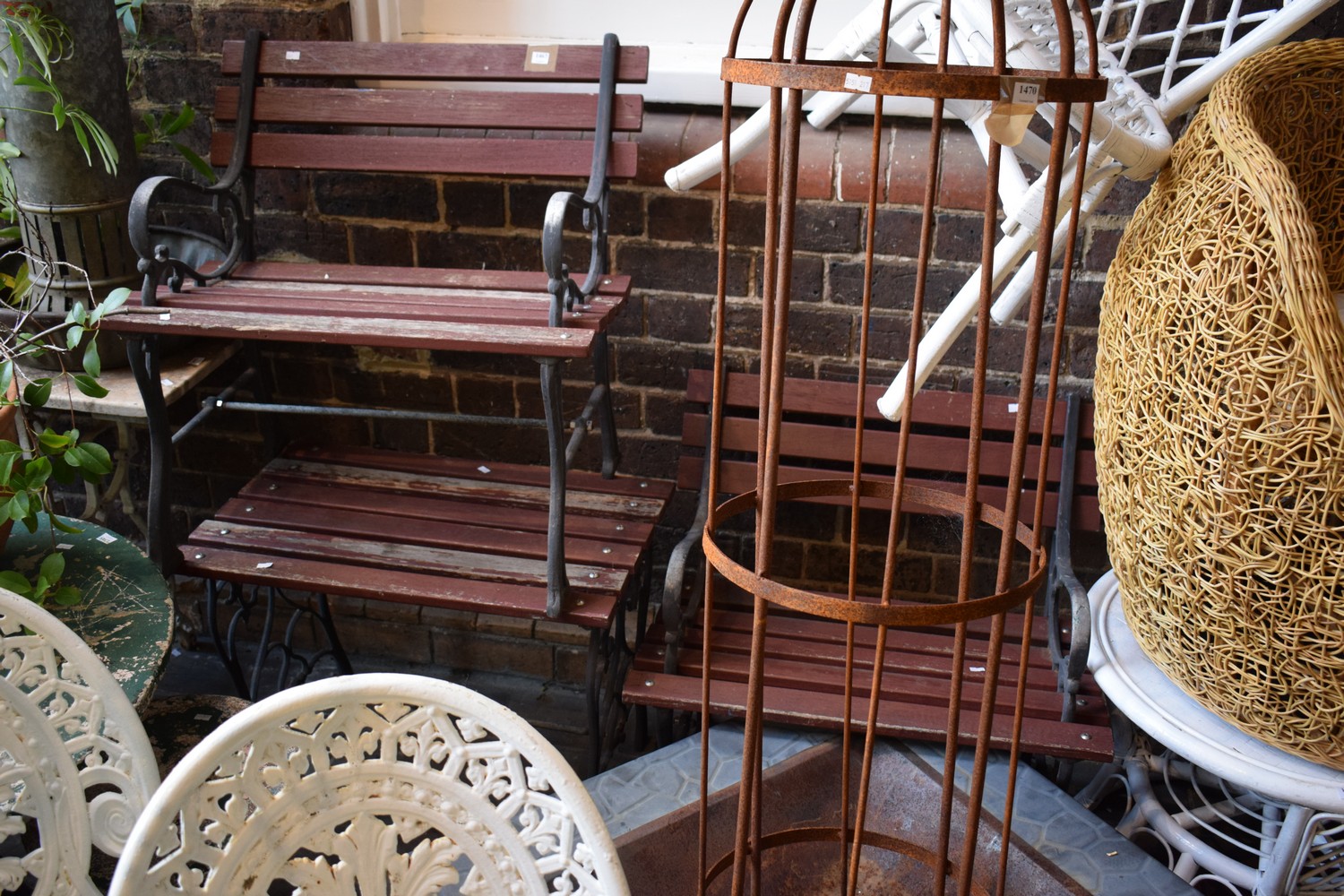 A THREE PIECE OUTDOOR TIMBER AND METAL SETTING