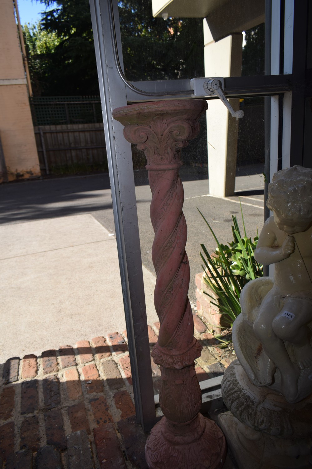 A PINK FINISHED CONCRETE BARLEY TWIST PLANT STAND (A/F)
