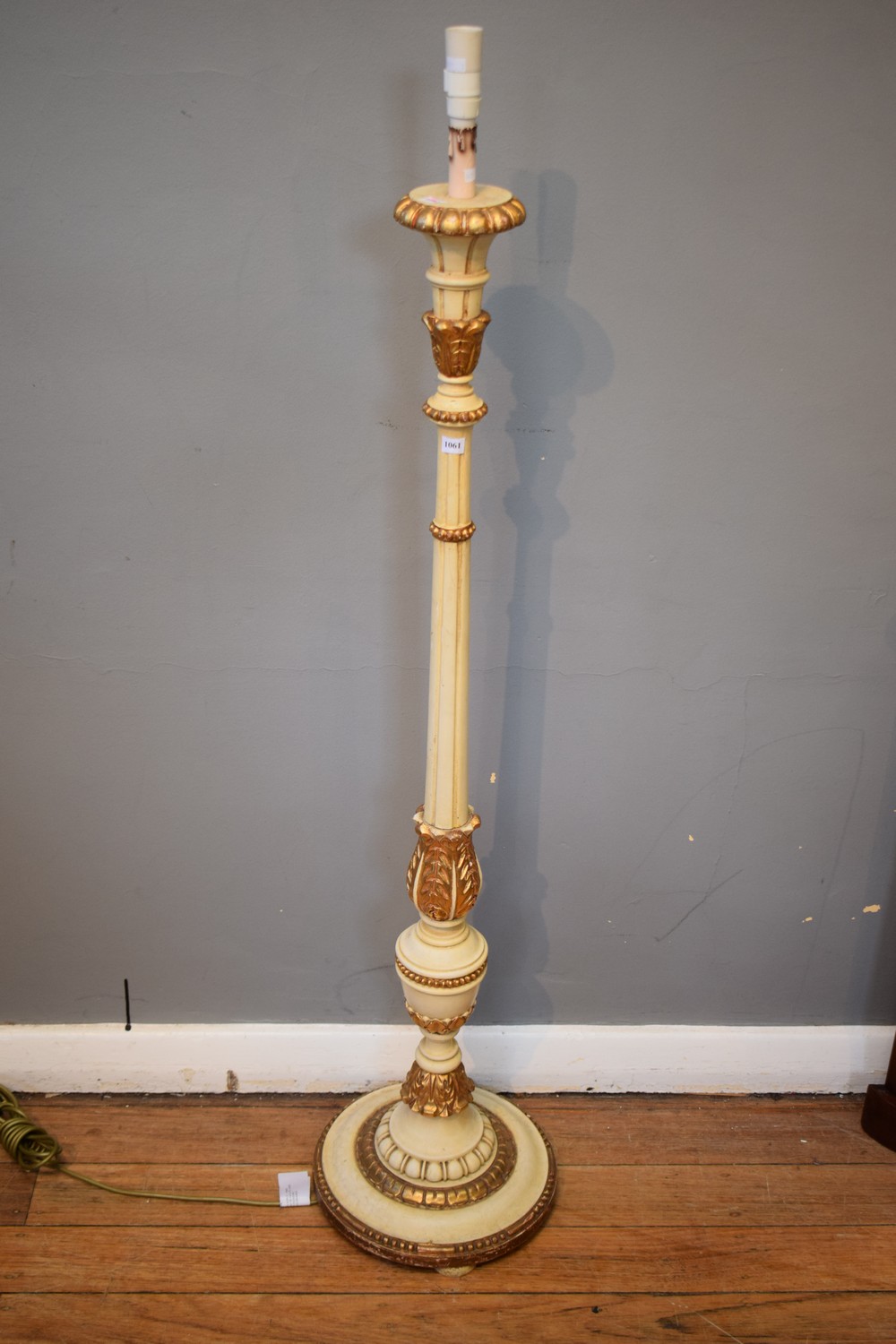 A FLORENTINE STANDARD LAMP, CREAM FINISHED CARVED TIMBER WITH GILDED HIGHLIGHTS, EARLY TO MID 20TH CENTURY, 143CM HIGH