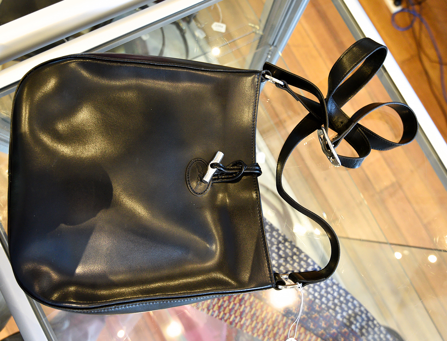 A BLACK LEATHER HANDBAG BY LONGCHAMP, (A/F)