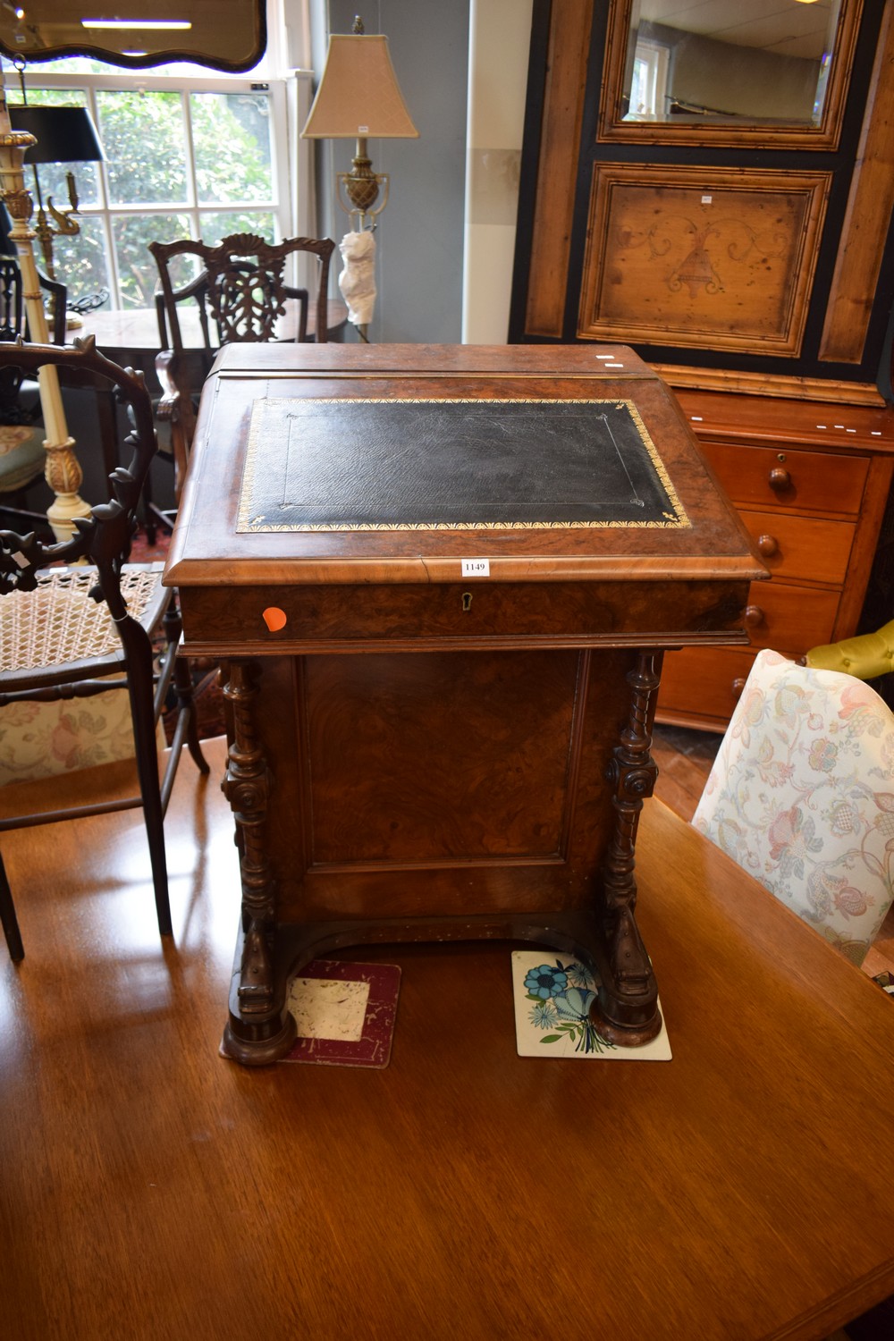 A VICTORIAN LADIES BURR WALNUT DAVENPORT CIRCA 1875, 79H x 57W x 58D CM