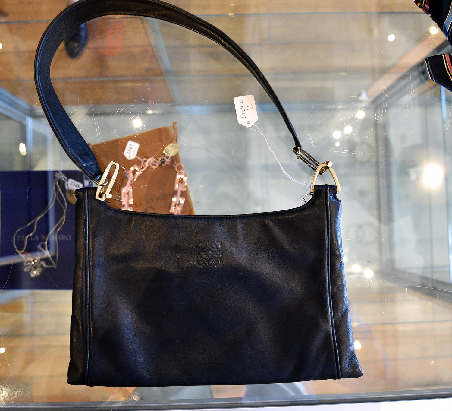A BLACK LEATHER HANDBAG BY LOEWE, (A/F)