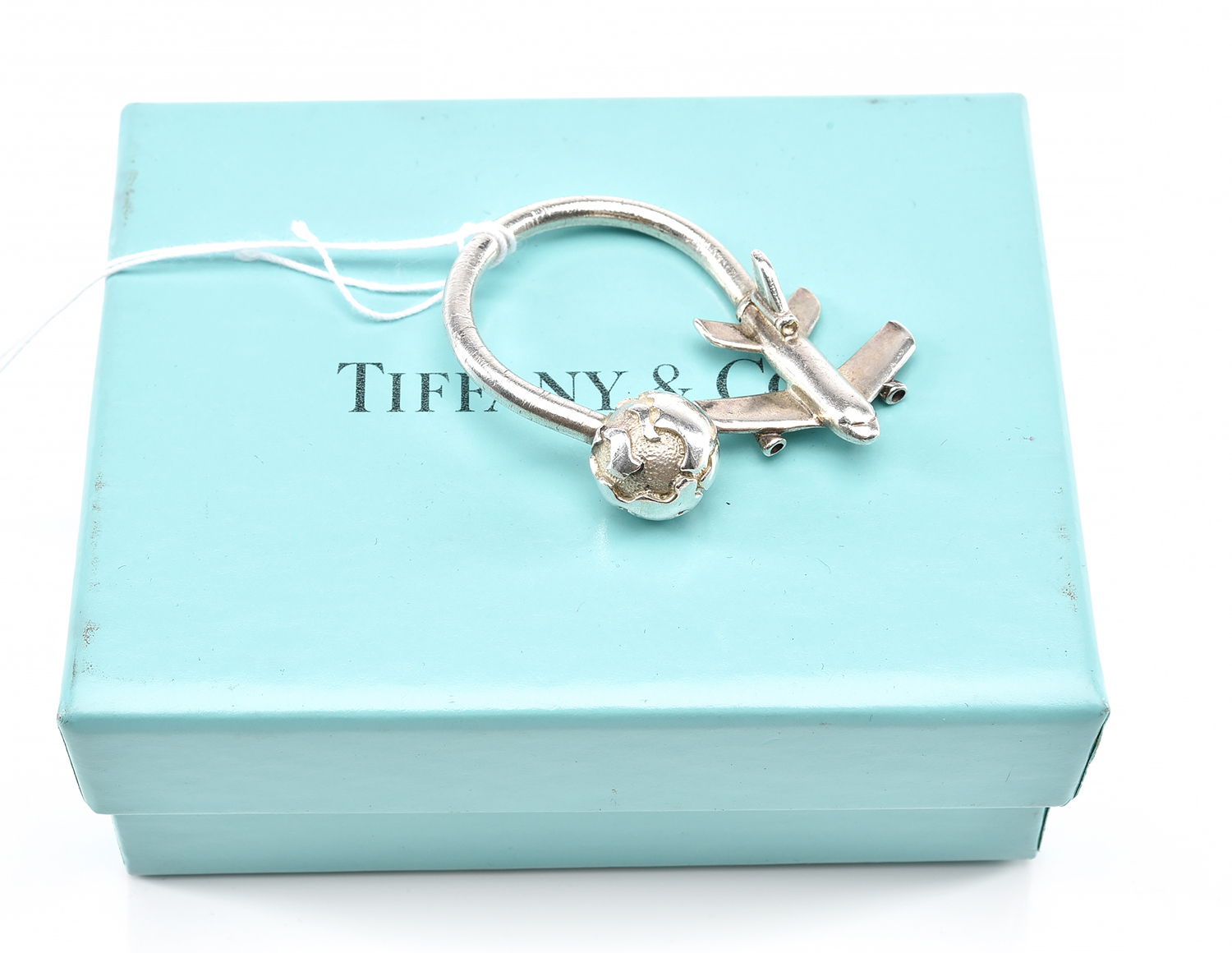 A KEY RING BY TIFFANY & CO. WITH AEROPLANE AND GLOBE, BOXED