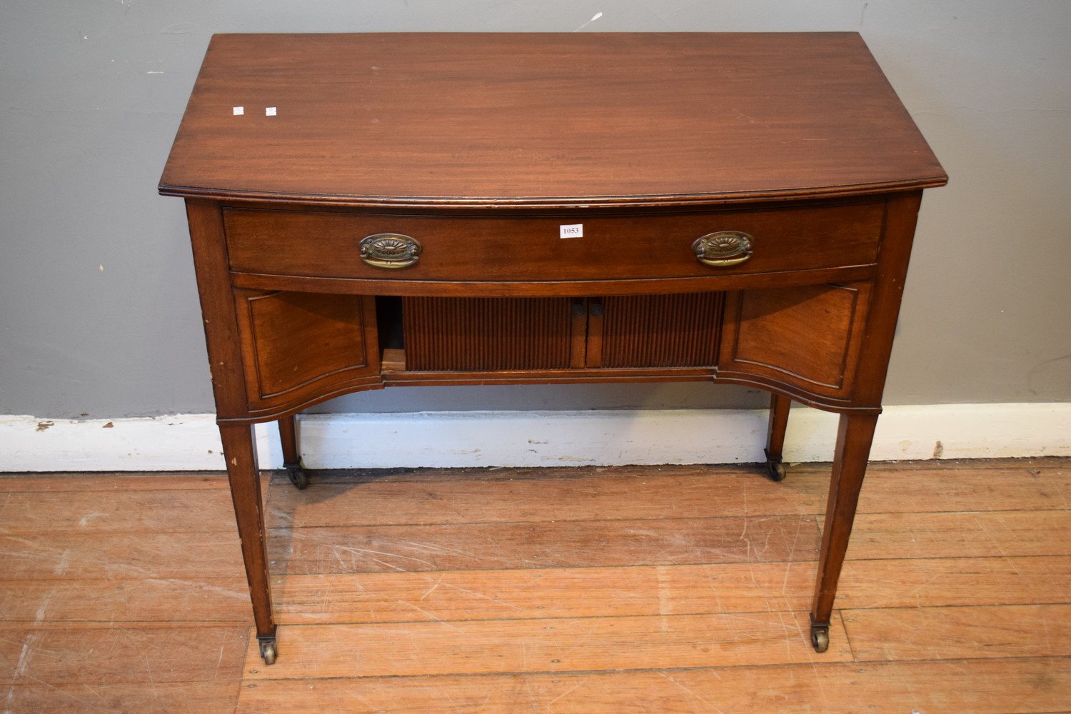 A MAHOGANY GEORGIAN LADIES DESK WITH TAMBOUR FRONT CIRCA 1820 (80H x 91W x 49D)