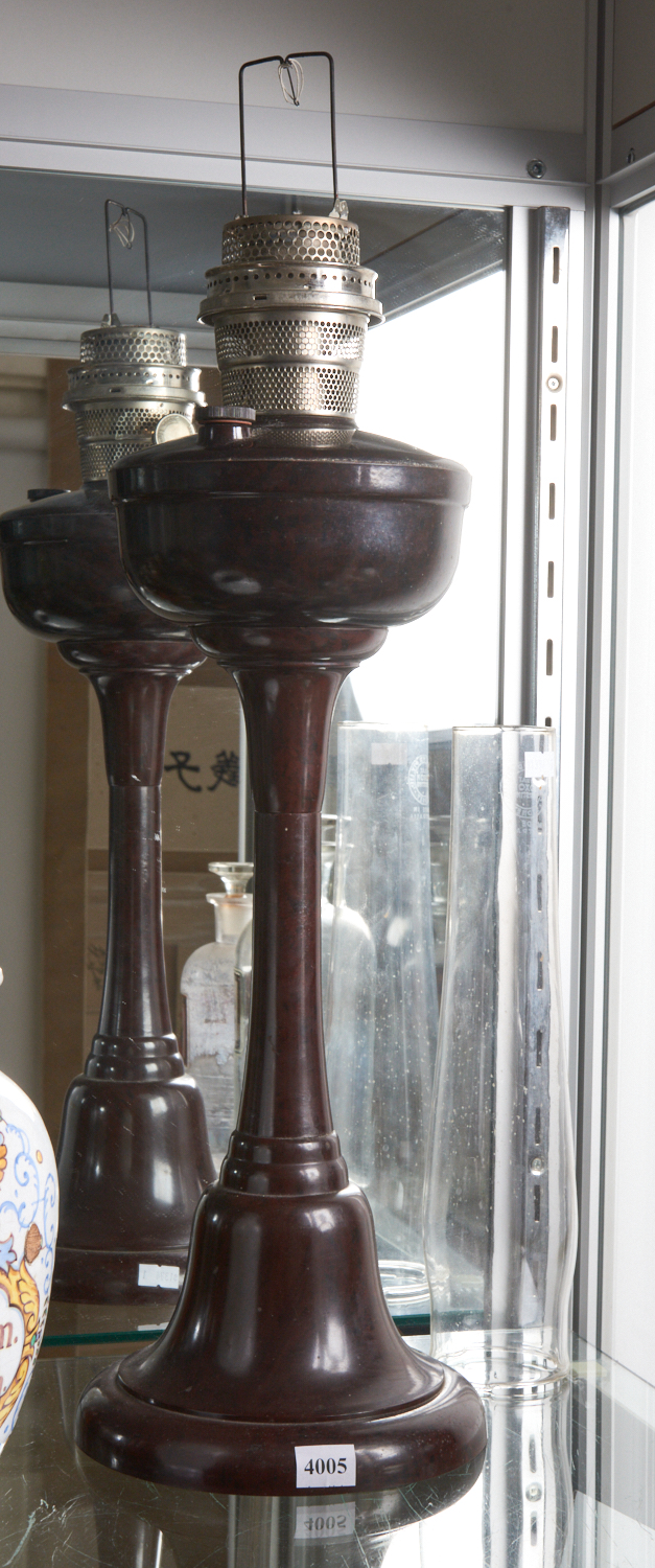 A SUPER ALADDIN BAKELITE KEROSENE LAMP WITH CLEAR GLASS FLUTE