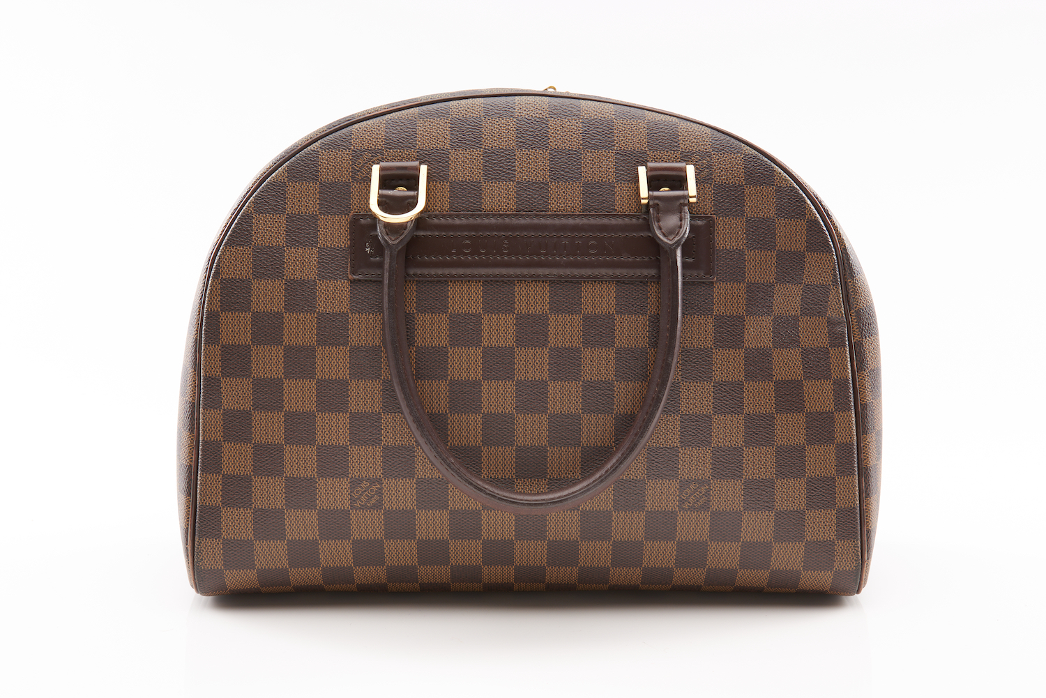 Styled in Damier Ebene coated canvas with gold metal hardware, 24 x 35 x 15cm.