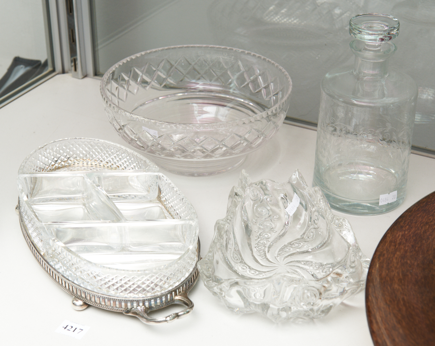 A GROUP OF GLASS AND CRYSTAL INCLUDING STUART, SCOTTISH GLASS, DECANTER ETC
