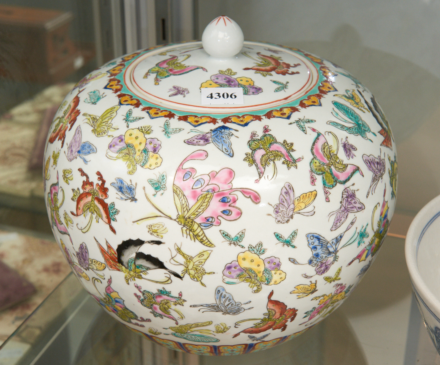 A QING BUTTERFLY MOTIF CHINESE GINGER JAR