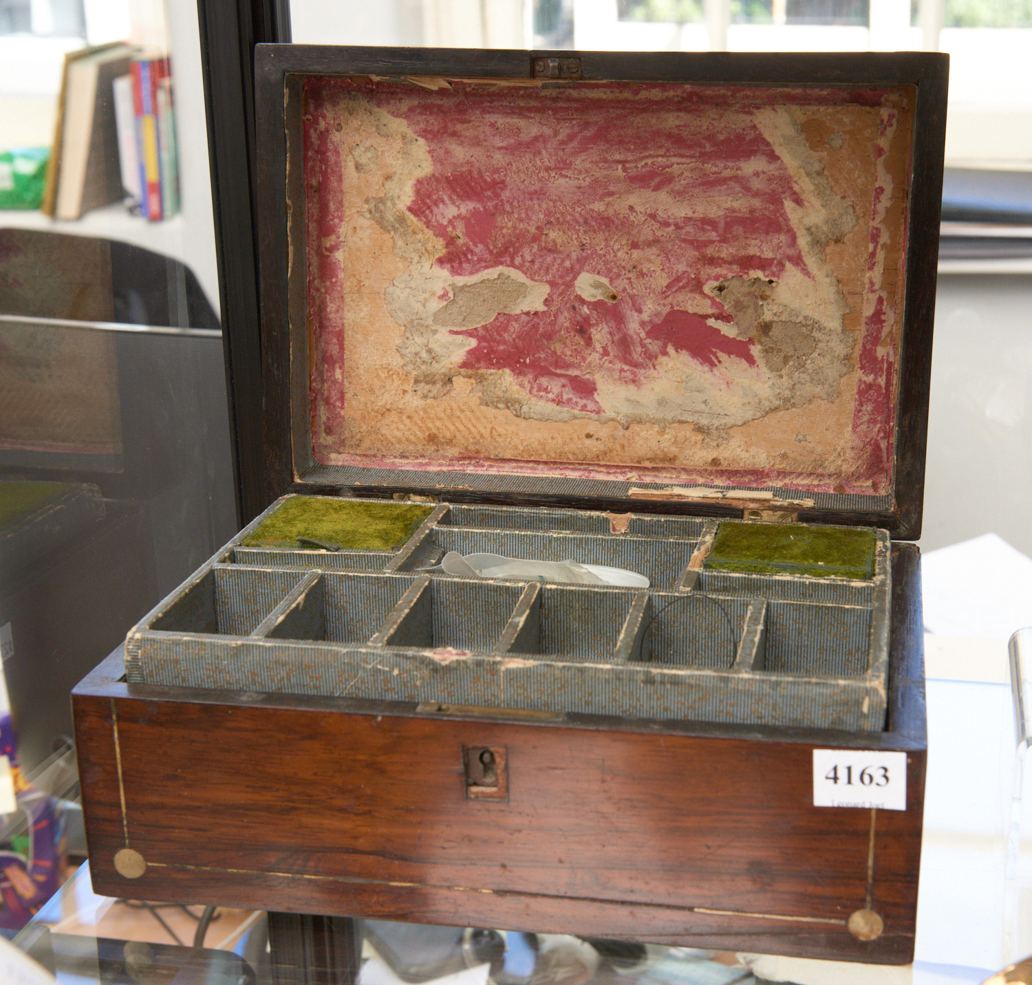 A VICTORIAN CUT BRASS INLAID ROSEWOOD JEWELLERY BOX