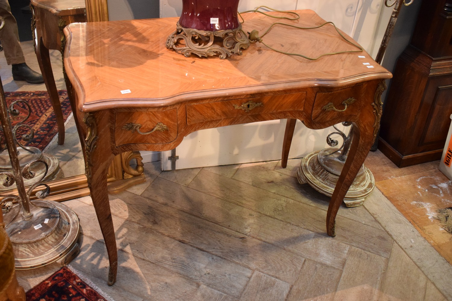 A LOUIS XV STYLE THREE DRAWER LADIES DESK (77H x 101W x 60D CM)