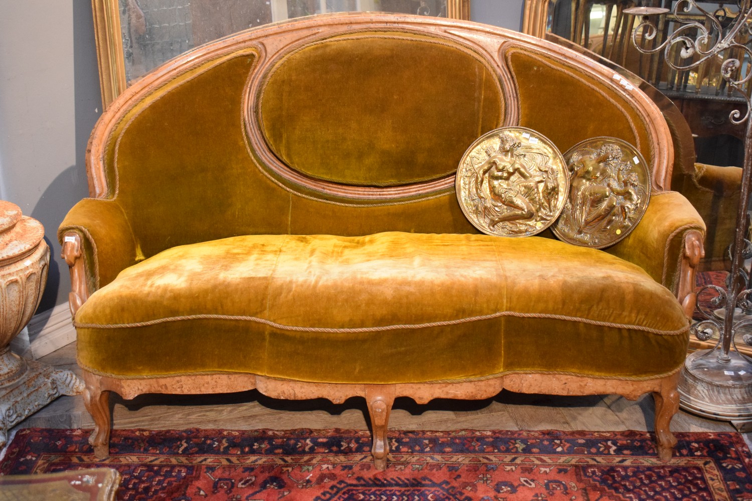 A RARE 19TH CENTURY FRENCH SALON SOFA IN WALNUT (96H x 179W x 96D CM)