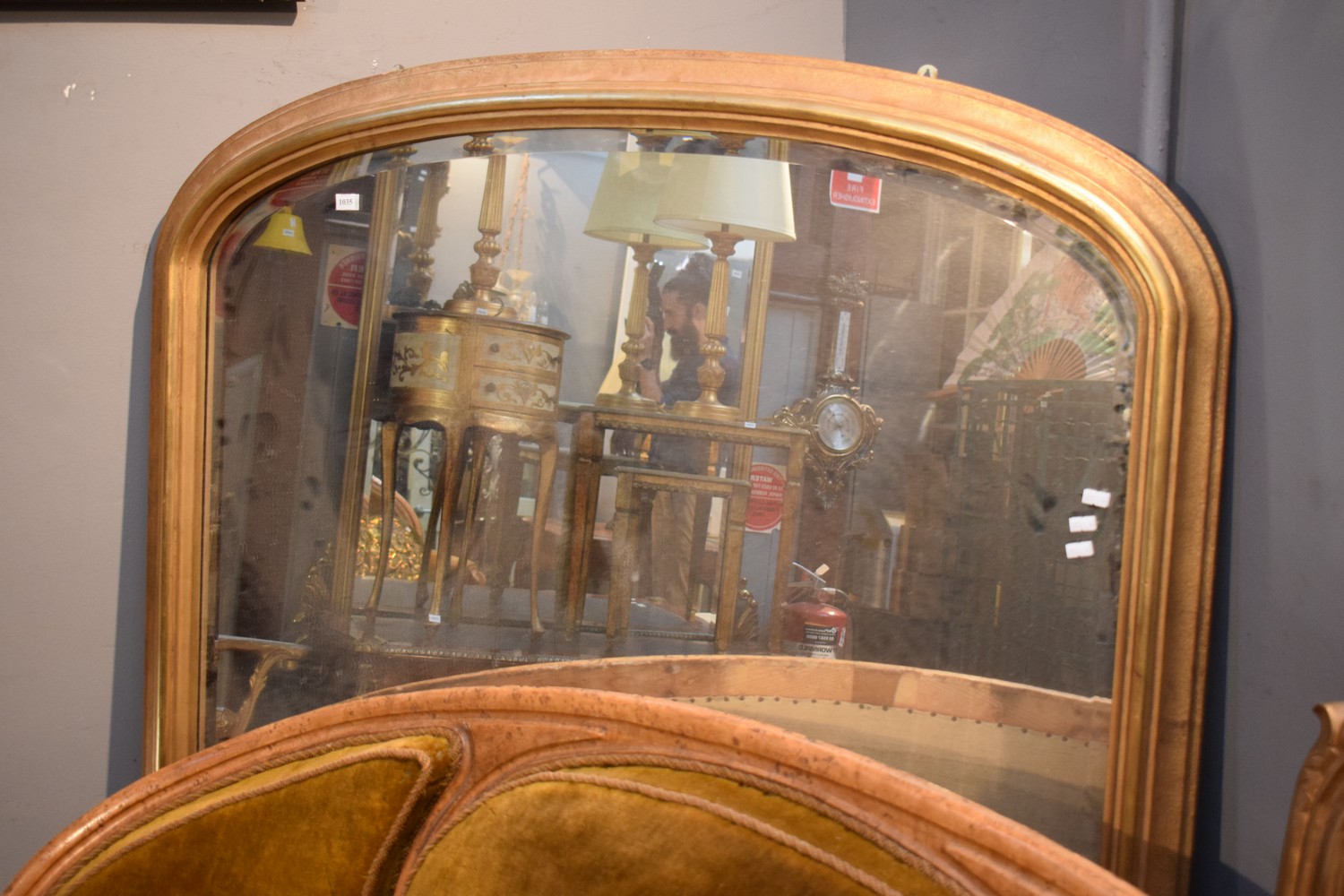 A LARGE VICTORIAN STYLE GILT OVERMANTLE MIRROR (166H x 125W CM)