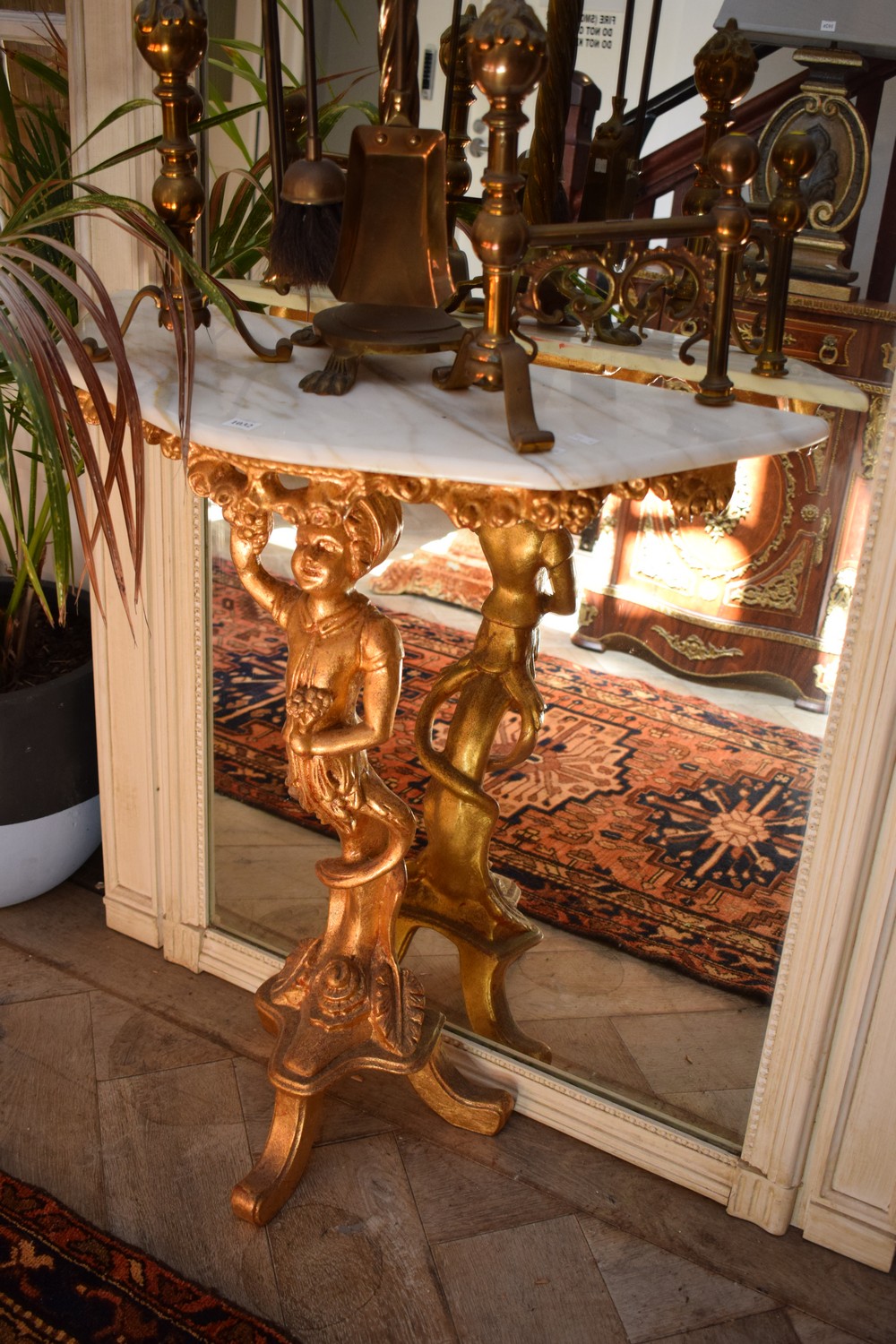 A SMALL GILT AND MARBLE CONSOLE TABLE