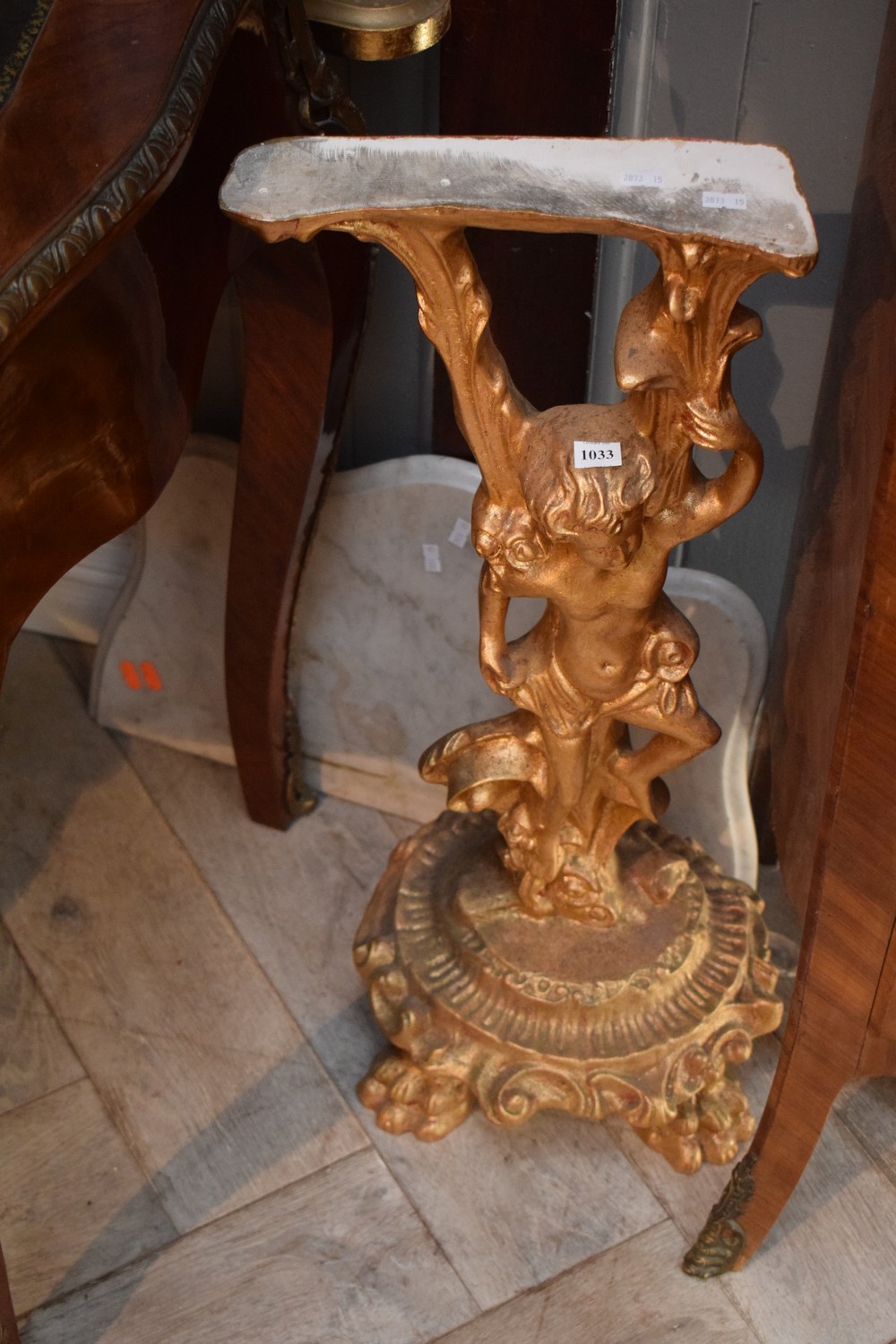 A SMALL GILT AND MARBLE TOP CONSOLE TABLE