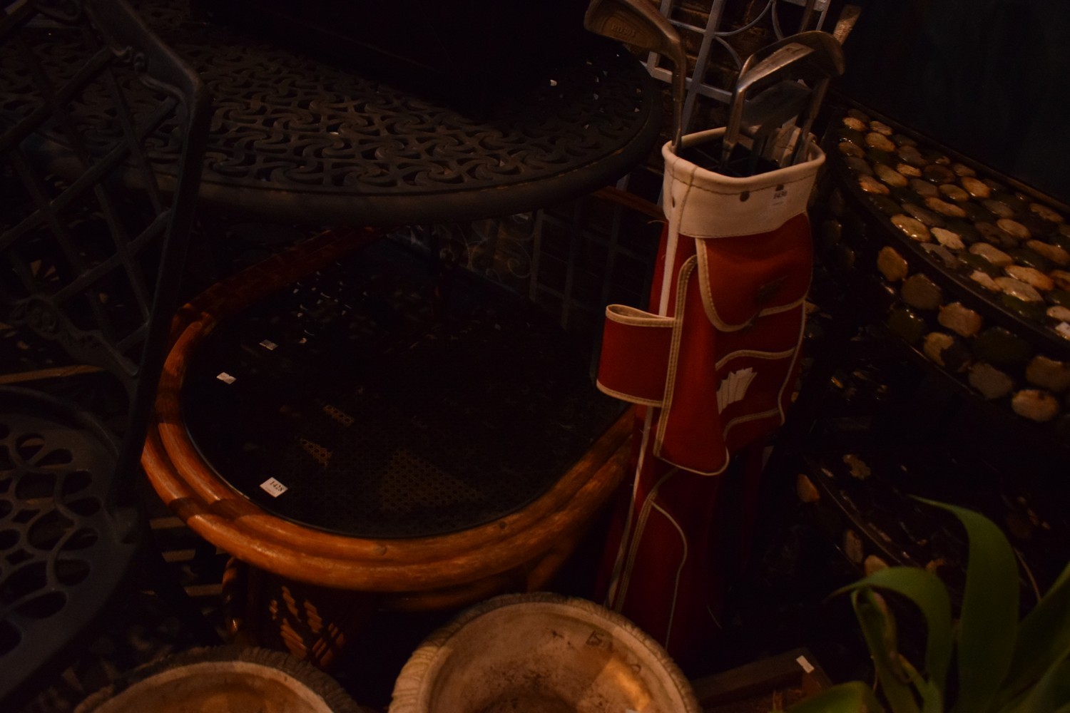 A TWO TIER MID CENTURY COFFEE TABLE WITH RATTAN BASE AND SMOKED GLASS TOP