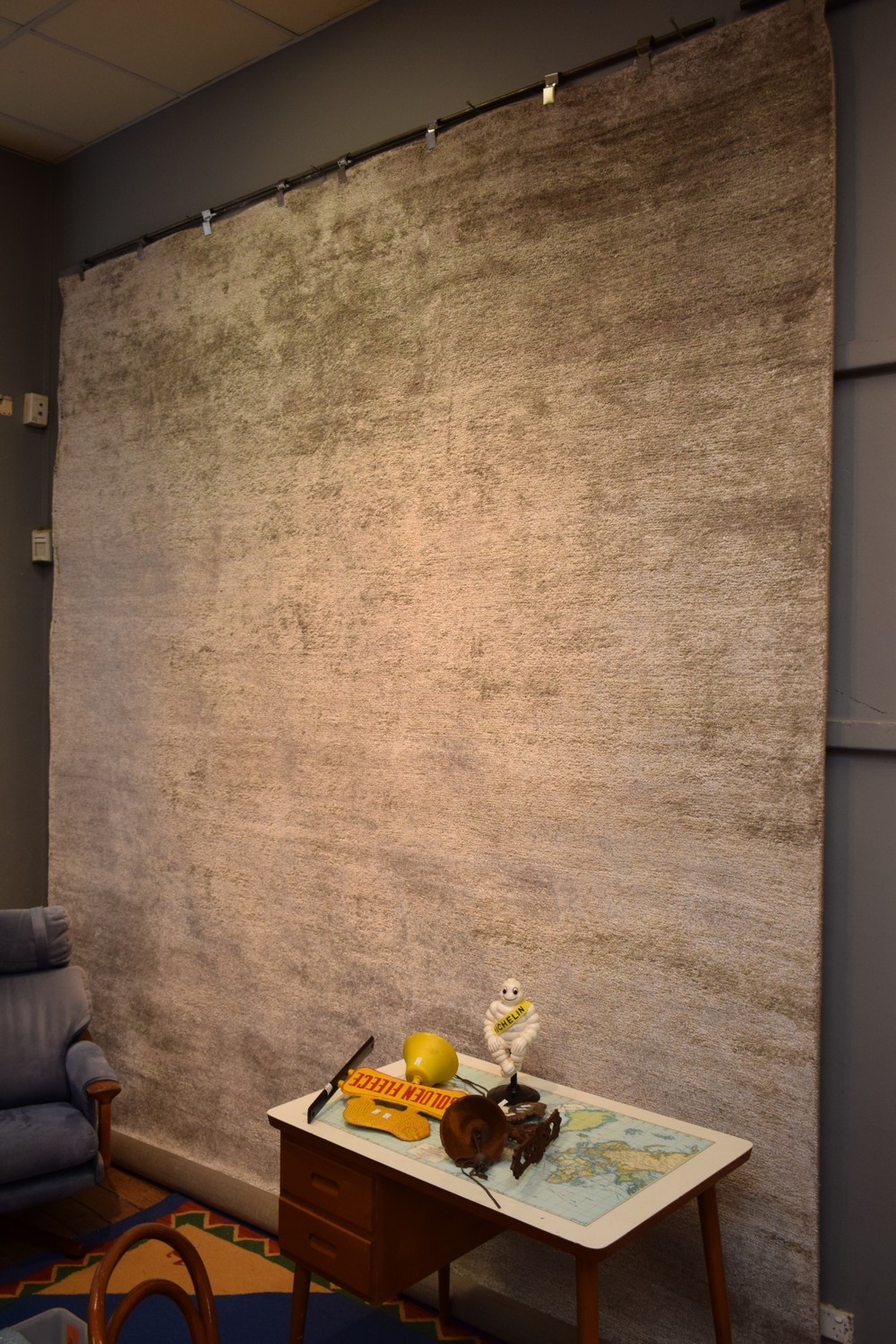 A LARGE, BRAND NEW CONTEMPORARY CARPET, HANDLOOM WEAVE, DENSE PLUSH VISCOSE SILK TEXTURED PILE IN A LIGHT BROWN TONE, IN EXCELLENT CONDITION, SIZE 400 X 300CM, ORIGIN INDIA, RRP $3,300