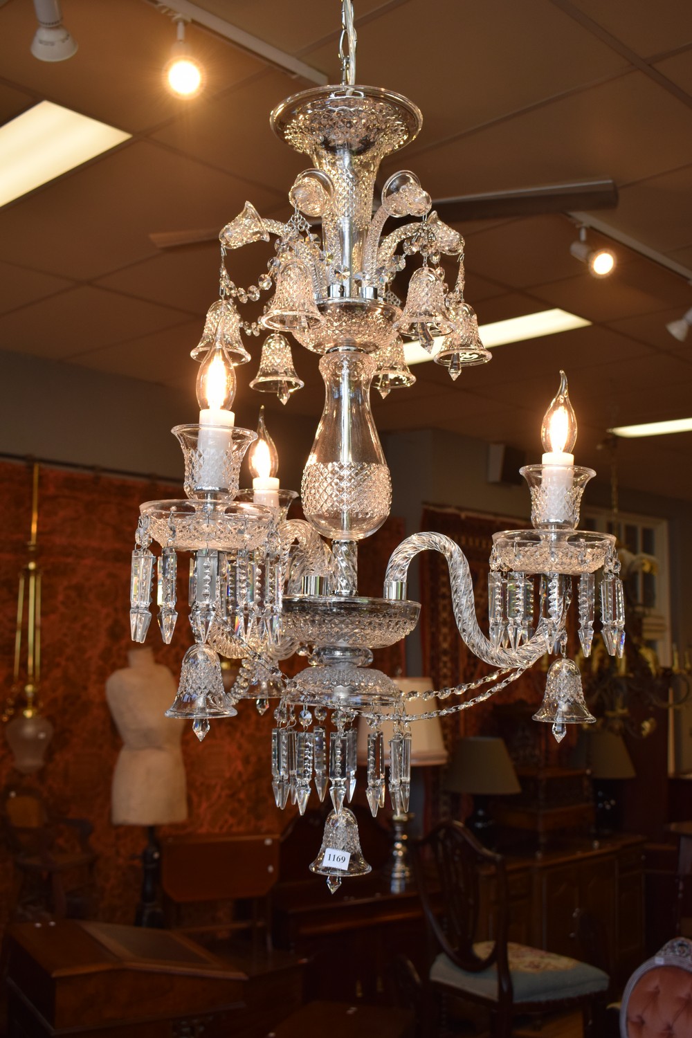 A THREE BRANCH TRADITIONAL STYLE CRYSTAL CHANDELIER