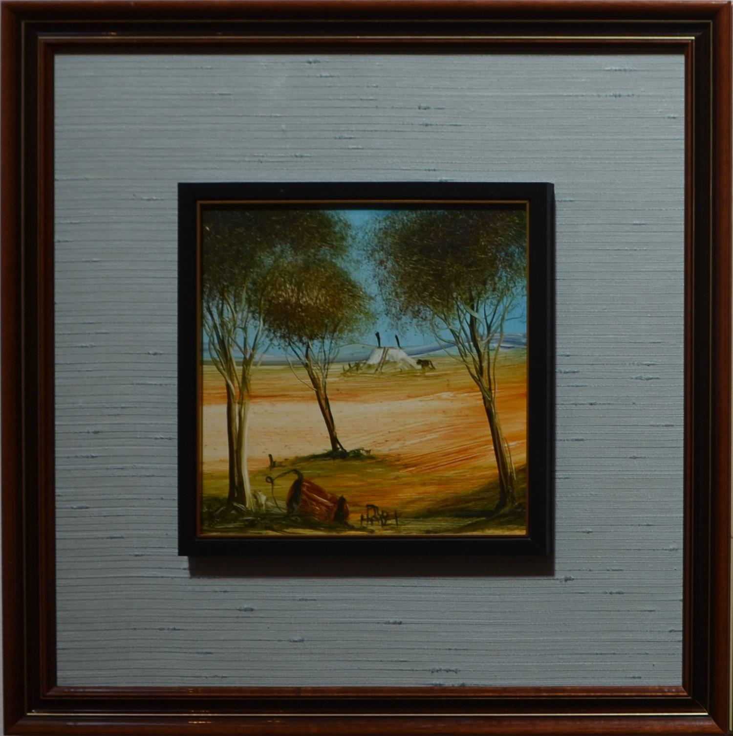 PRO HART, HIGH HOPES DIGGINGS, OIL ON BOARD, IMAGE: SIZE: 20 X 20CM, CONDITION: GOOD CONDITION, FRAME SIZE: 43.5 X 43.5CM