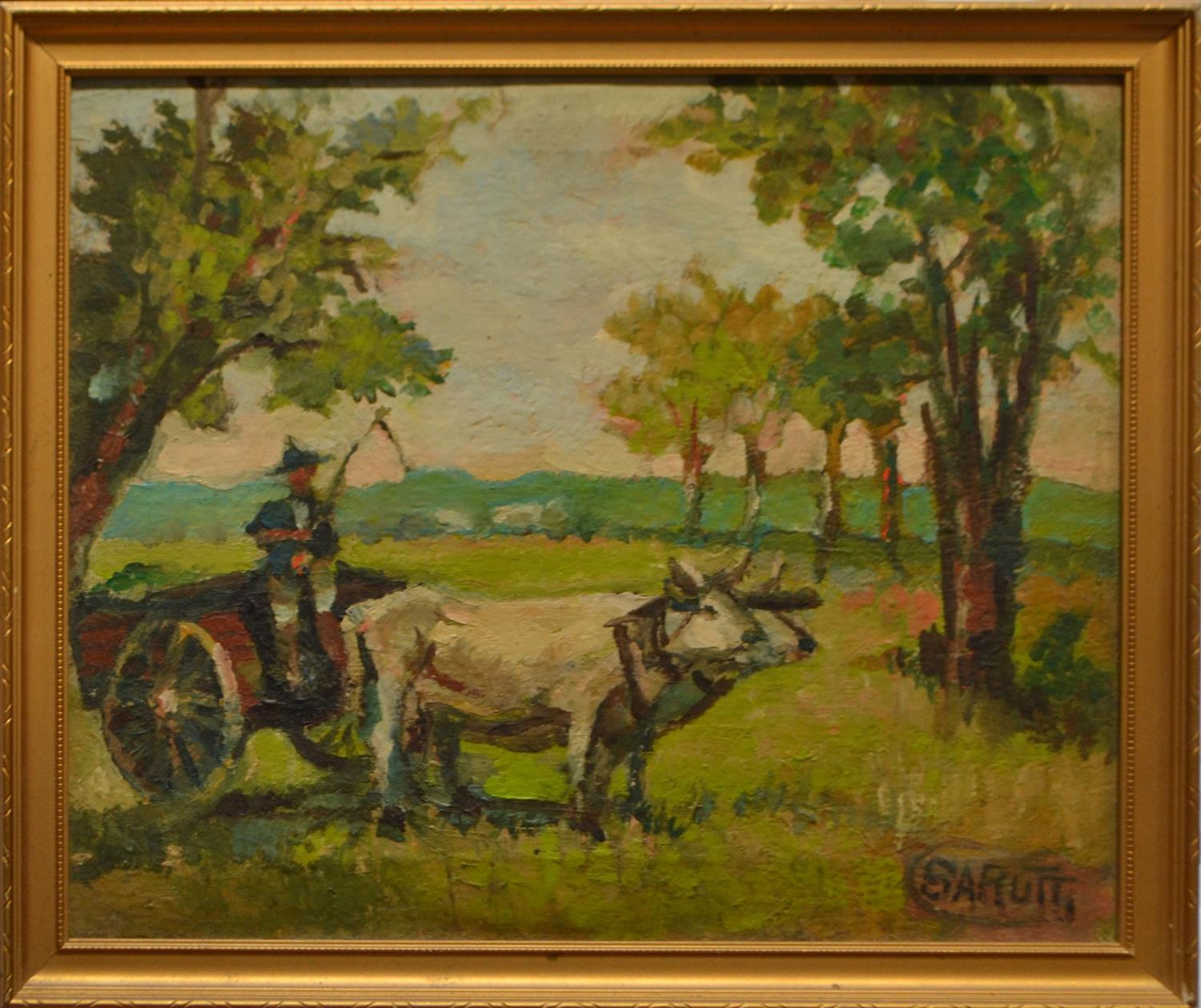 ARTIST UNKNOWN, FARM SCENE, OIL ON CANVAS, 27 X 31CM, FRAME SIZE: 31 X 35CM, CONDITION: HAIRLINE CRACKING THROUGHOUT