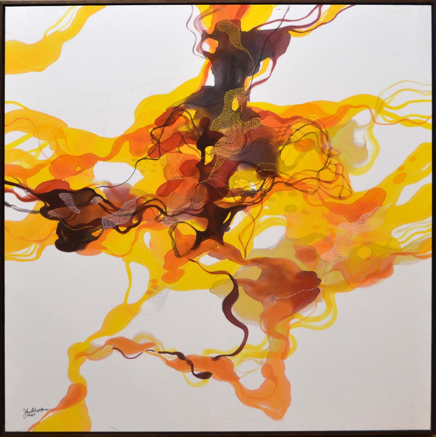 § JOHN MARTONO, UNTITLED 2015, MIXED MEDIA ON CANVAS, IMAGE SIZE: 99 X 99CM, FRAME SIZE: 102 X 102CM, CONDITION: GOOD CONDITION, SCUFF MARKS TO SURFACE